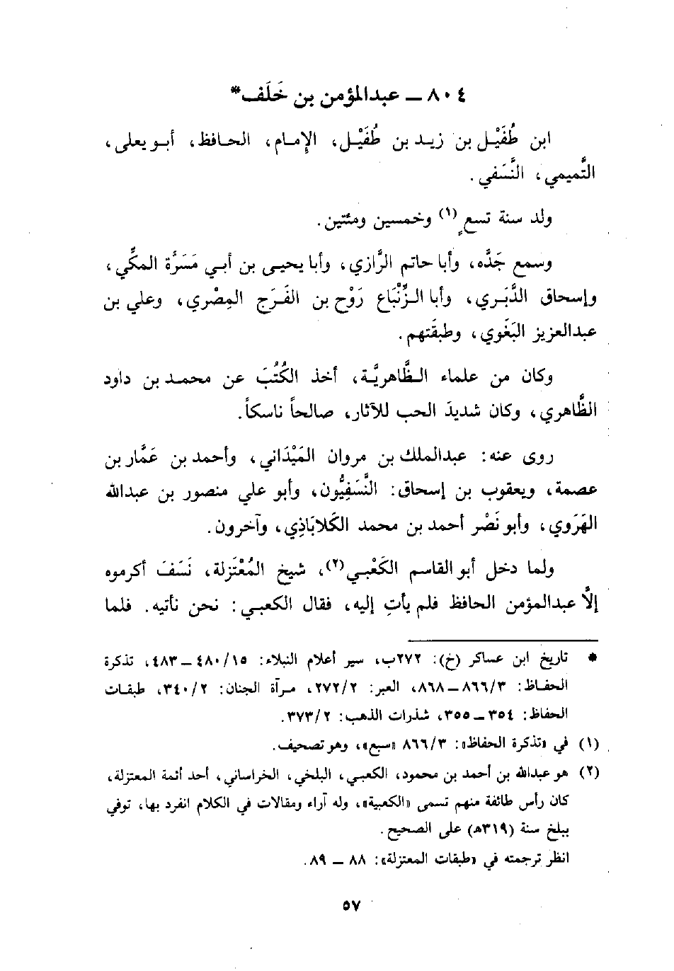 (¬2) هو عبد الله بن أحمد بن محمود، الكعبي، البلخي، الخراساني، أحد أئمة المعتزلة، كان رأس طائفة منهم تسمى "الكعبية"، وله آراء ومقالات في الكلام انفرد بها، توفي ببلخ سنة (319 هـ) على الصحيح.