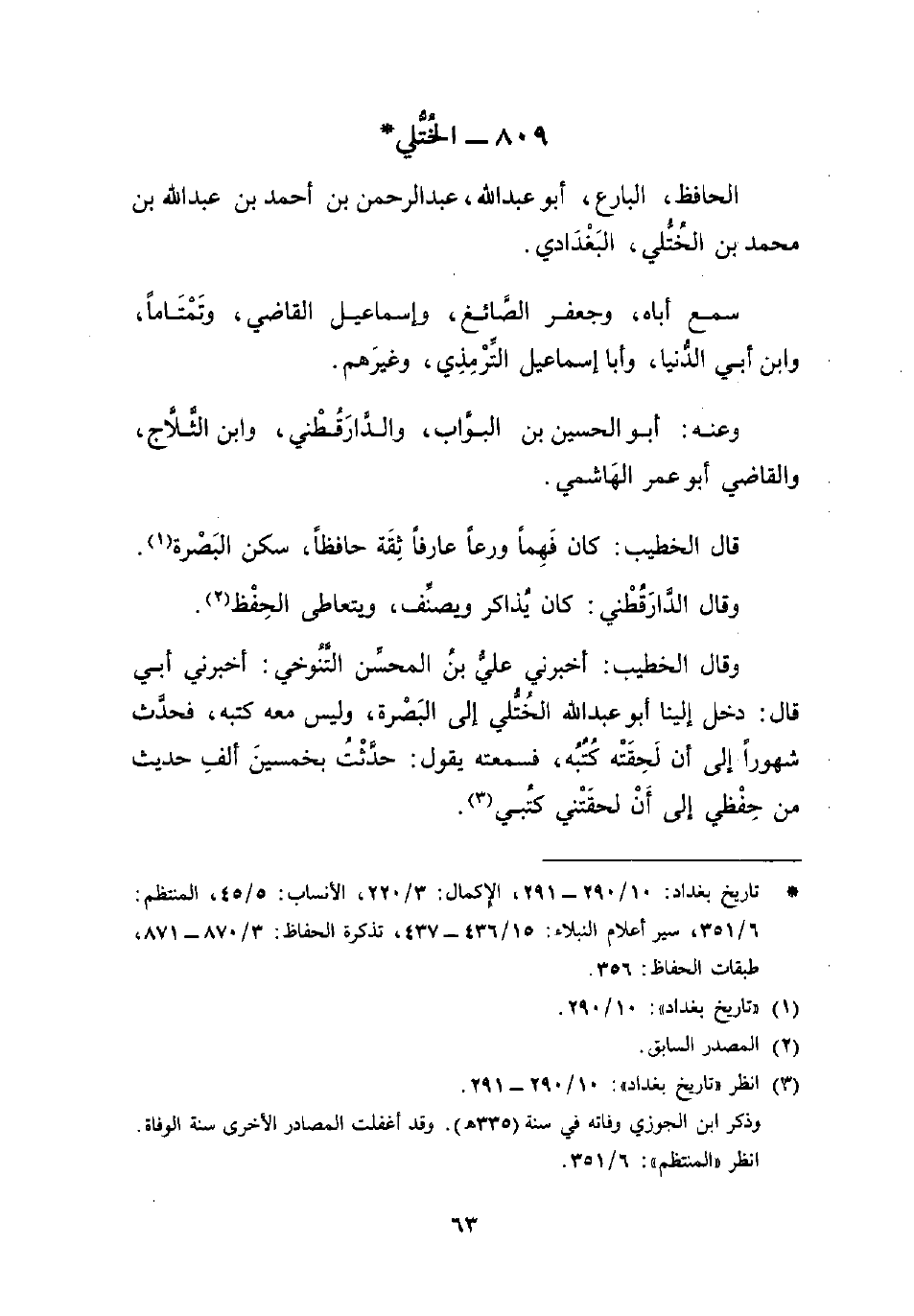 (¬3) انظر "تاريخ بغداد": 10/ 290 - 291.