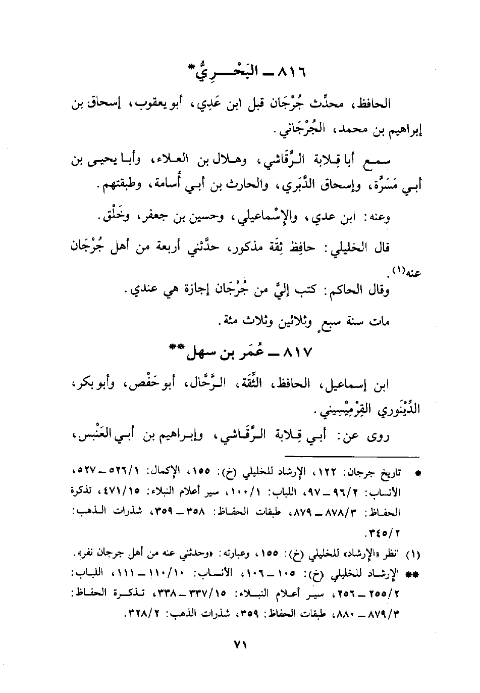 قال الخليلي: حافِظ ثِقَة مذكور، حدَّثني أربعة من أهل جُرْجَان عنه (¬1).
