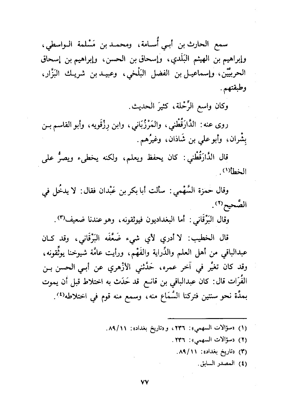 (¬1) "سؤالات السهمي": 236، و "تاريخ بغداد": 11/ 89.