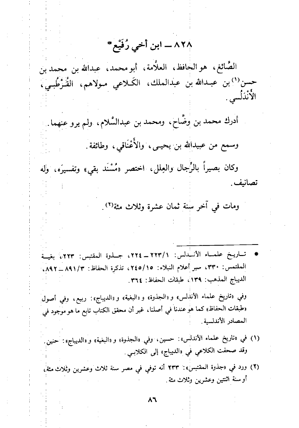 (¬2) ورد في "جذوة المقتبس": 233 أنه توفي في مصر سنة ثلاث وعشرين وثلاث مئة، أو سنة اثنتين وعشرين وثلاث مئة.