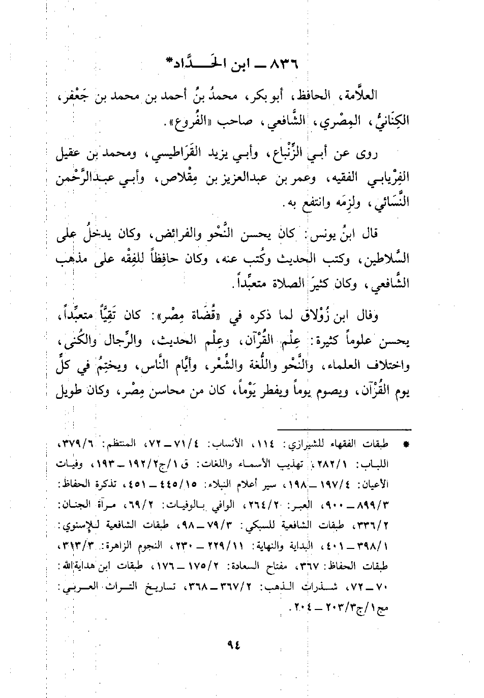 العلَّامة، الحافظ، أبو بكر، محمد بنُ أحمد بن محمد بن جَعْفر، الكِنانيُّ، المِصْري، الشَّافعي، صاحب "الفروع".