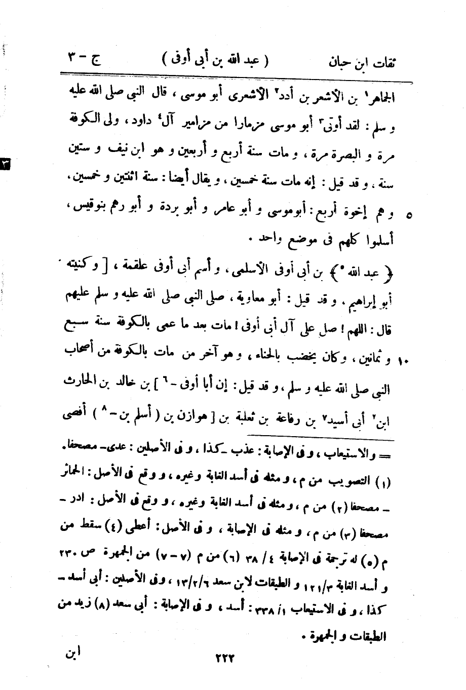 727 - عَبْد اللَّه بْن أبي أوفى الْأَسْلَمِيّ وَاسم أبي أوفى عَلْقَمَة وكنيته أَبُو إِبْرَاهِيم وَقد قيل أَبُو مُعَاوِيَة صلى النَّبِيَّ صَلَّى اللَّهُ عَلَيْهِ وَسَلَّمَ عَلَيْهِم قَالَ اللَّهُمَّ صل على آل أبي أوفى مَاتَ بعد مَا عمى بِالْكُوفَةِ سنة سبع وَثَمَانِينَ وَكَانَ يخضب بِالْحِنَّاءِ وَهُوَ آخر من مَاتَ بِالْكُوفَةِ من أَصْحَاب النَّبِي صلى الله عَلَيْهِ وَسَلَّمَ وَقد قيل إِن أَبَا أوفى بْن خَالِد بْن الْحَارِث بْن أبي أسيد بْن رِفَاعَة بْن ثَعْلَبَة بْن هوَازن بْن أسلم بْن أفصى بْن حَارِثَة