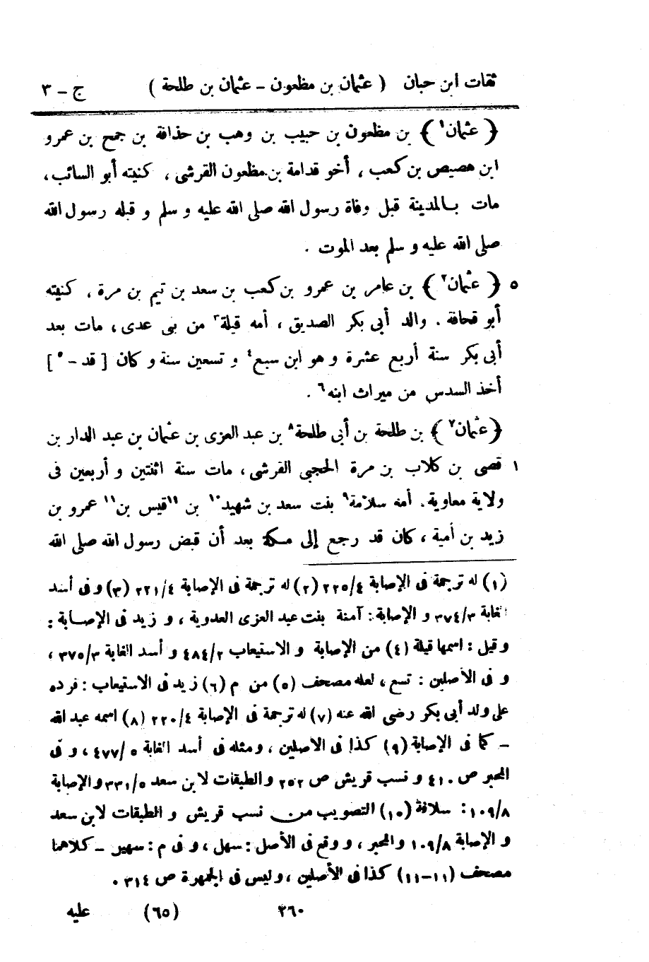 856 - عُثْمَان بْن طَلْحَة بْن أبي طَلْحَة بْن عَبْد الْعُزَّى بْن عُثْمَان بْن عَبْد الدَّار بْن قصي بْن كلاب بْن مرّة الحَجبي الْقرشِي مَاتَ سنة اثْنَتَيْنِ وَأَرْبَعين فِي ولَايَة مُعَاوِيَة أمه سَلامَة بنت سعد بْن شَهِيد بْن قيس بْن عَمْرو بْن زيد بْن أُميَّة كَانَ قد رَجَعَ إِلَى مَكَّة بعد أَن قبض رَسُول اللَّهِ صَلَّى اللَّهُ عَلَيْهِ وَسَلَّمَ اللَّه عَلَيْهِ وَسلم وسكنها إِلَى أَن مَاتَ بهَا