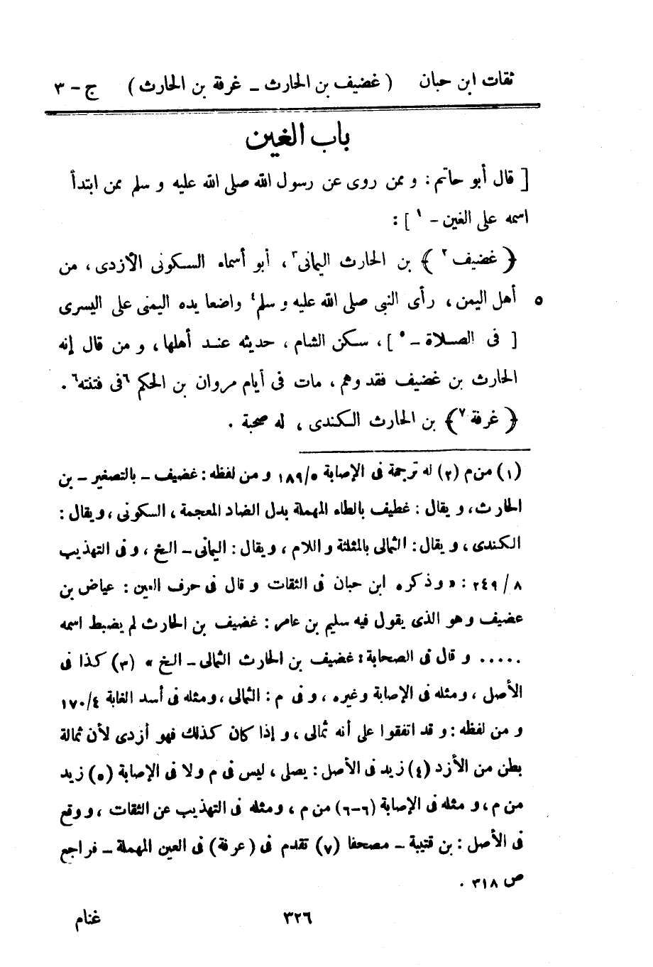 قَالَ أَبُو حَاتِم وَمِمَّنْ روى عَن رَسُول اللَّهِ صَلَّى اللَّهُ عَلَيْهِ وَسَلَّمَ مِمَّن ابْتَدَأَ اسْمه على الْغَيْن