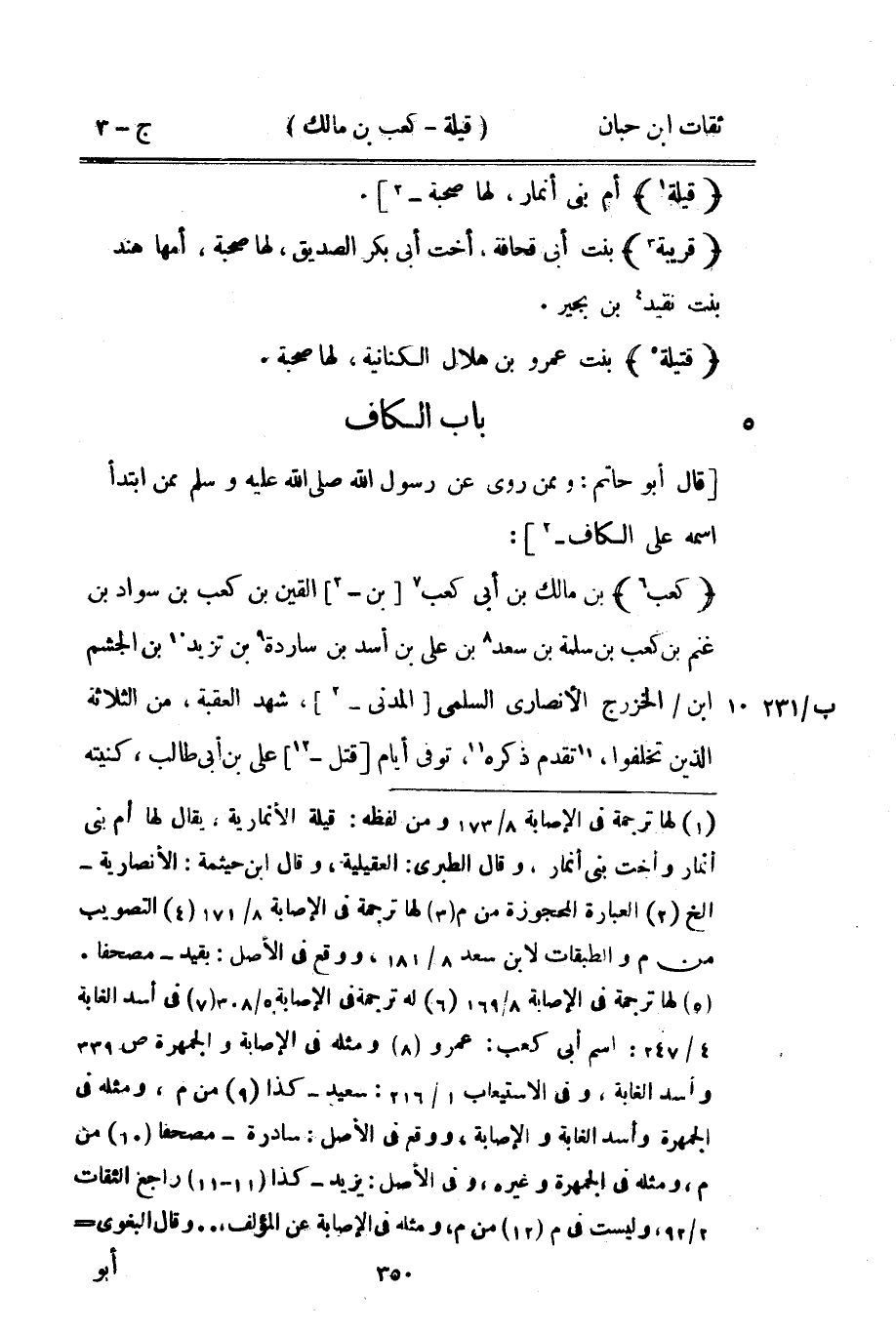 قَالَ أَبُو حَاتِم وَمِمَّنْ روى عَن رَسُول اللَّهِ صَلَّى اللَّهُ عَلَيْهِ وَسَلَّمَ مِمَّن ابْتَدَأَ اسْمه على الْكَاف