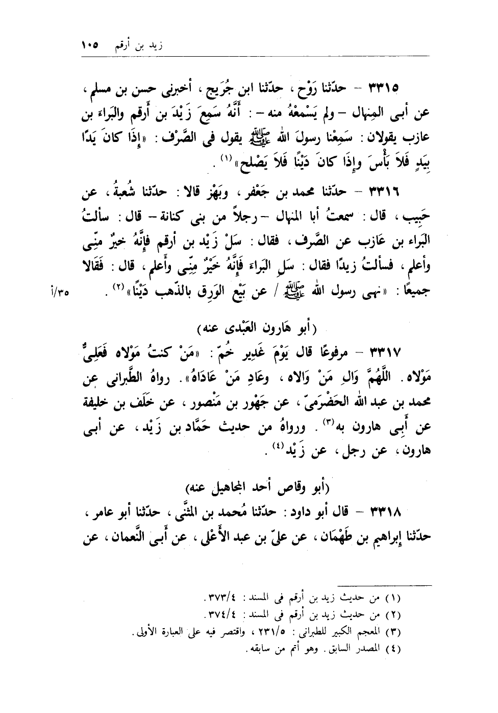 (¬1) من حديث زيد بن أرقم فى المسند: 4/373.