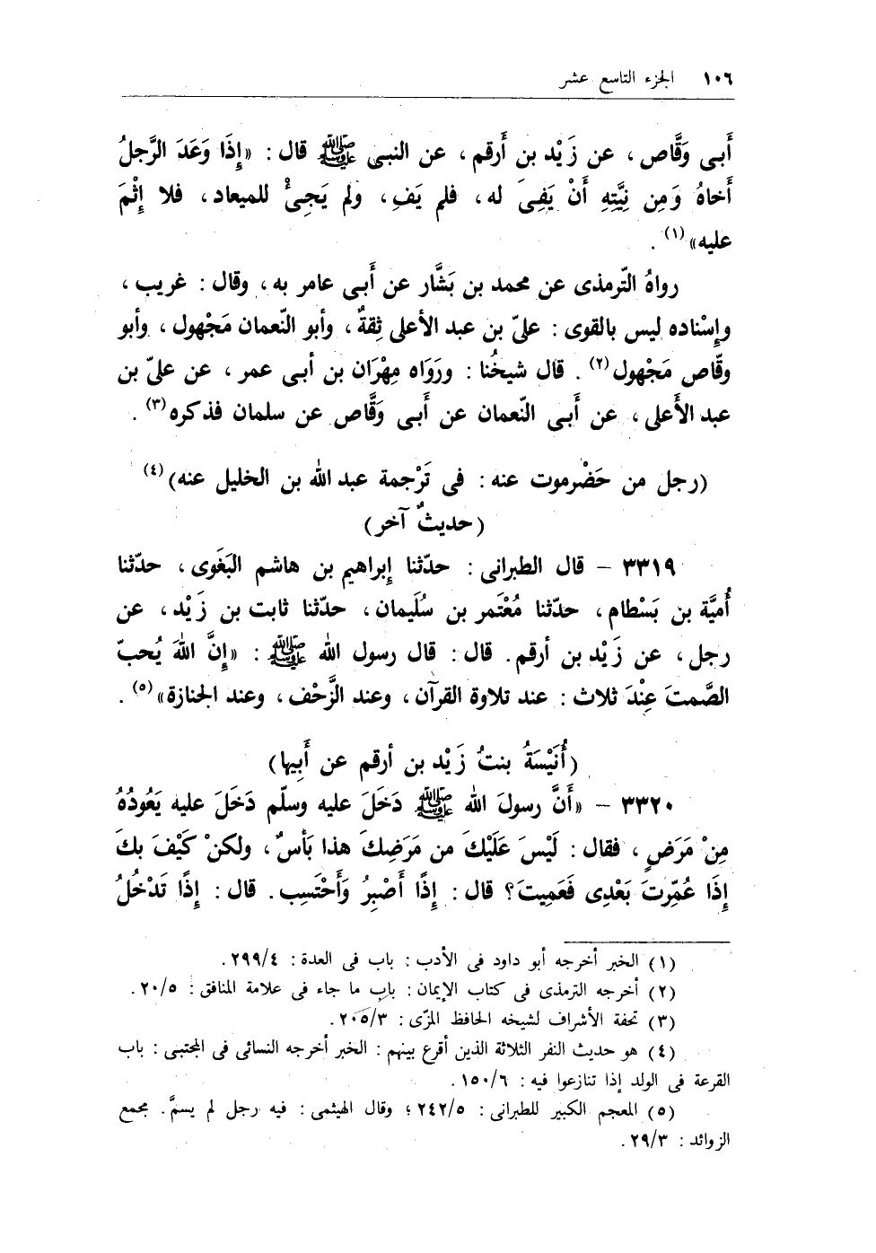 أبى وقاص، عن زيد بن أرقم، عن النبى - صلى الله عليه وسلم - قال: «إِذَا وَعَدَ الرَّجلُ أَخاُ وَمِن نِيَّتِهِ أَنْ يَفِىَ له، فلم يَفِ، ولم يَجِئْ للميعاد، فلا إِثْمَ عليه» (¬1) .
