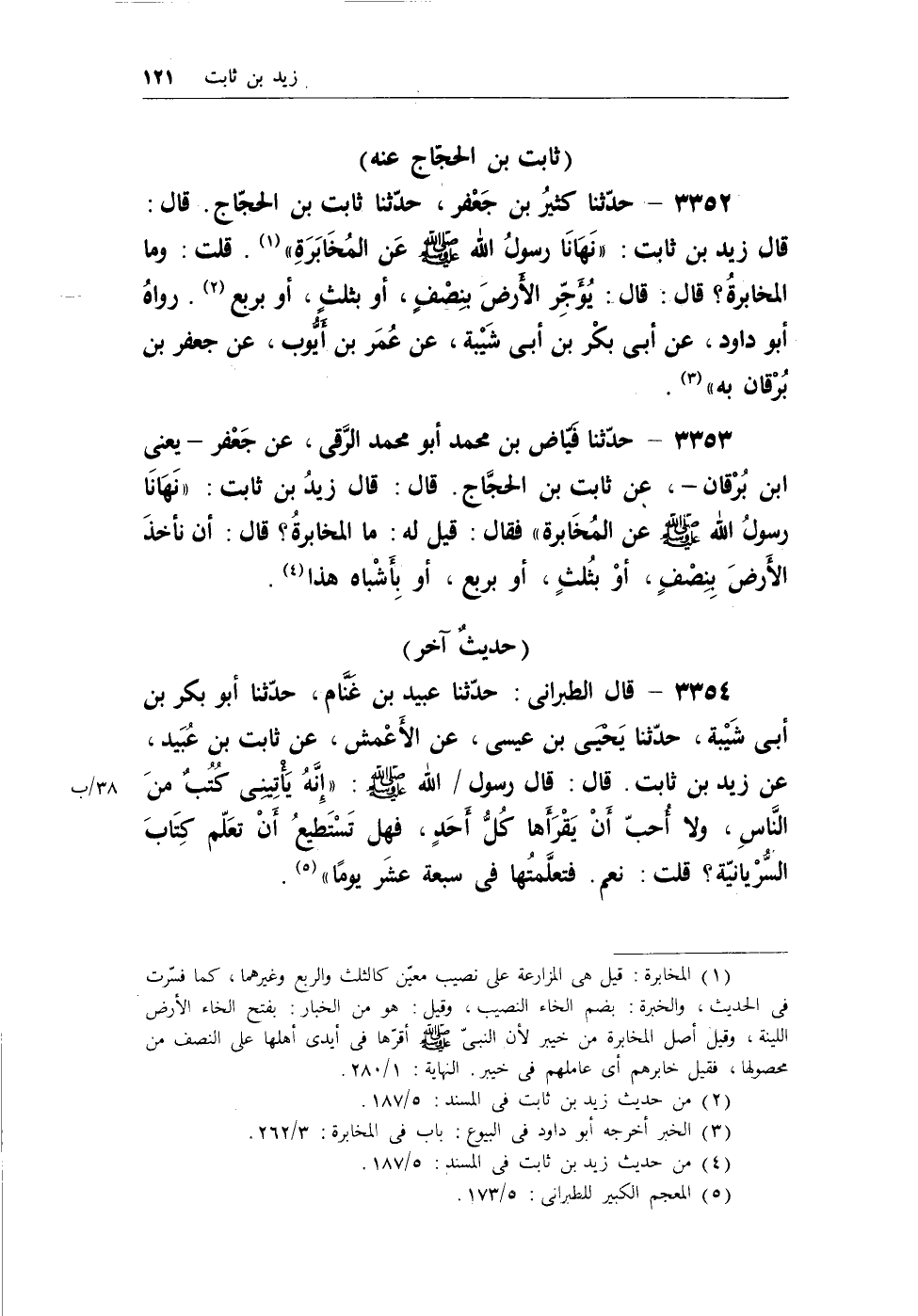 (¬4) من حديث زيد بن ثابت فى المسند: 5/187.