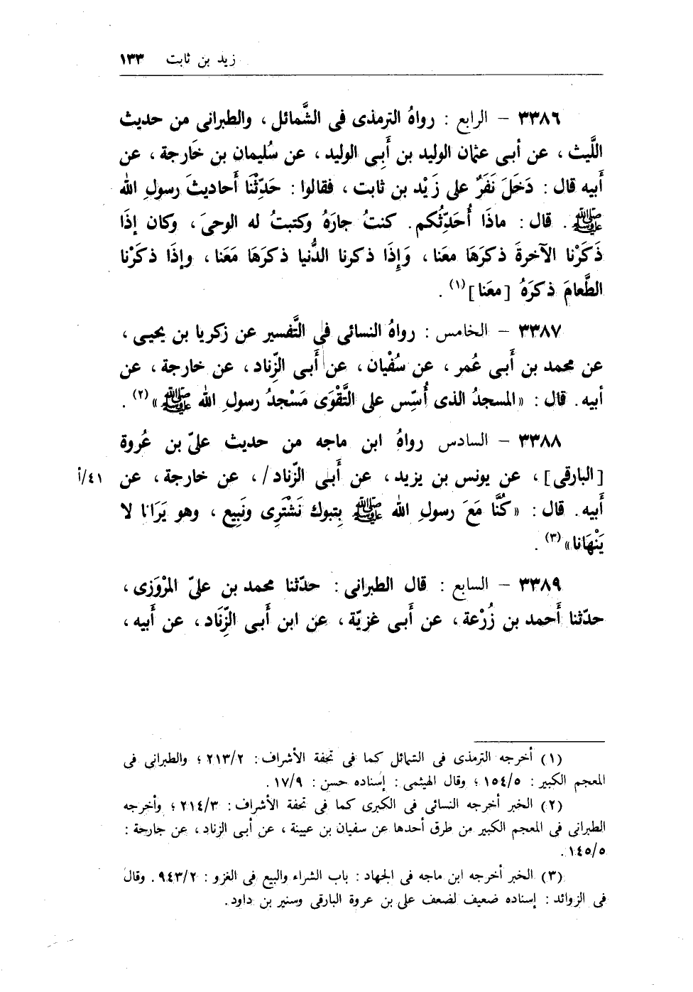 (¬2) الخبر أخرجه النسائى فى الكبرى كما فى تحفة الأشراف: 3/214؛ وأخرجه الطبرانى فى المعجم الكبير من طرق أحدها عن سفيان بن عيينة، عن أبى الزناد، عن جارجة: 5/145.