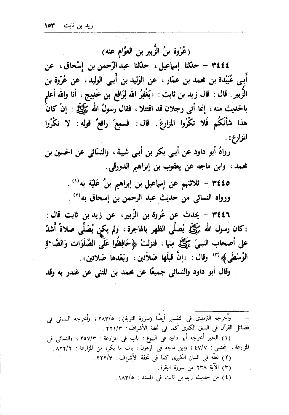 (¬4) من حديث زيد بن ثابت فى المسند: 5/183.