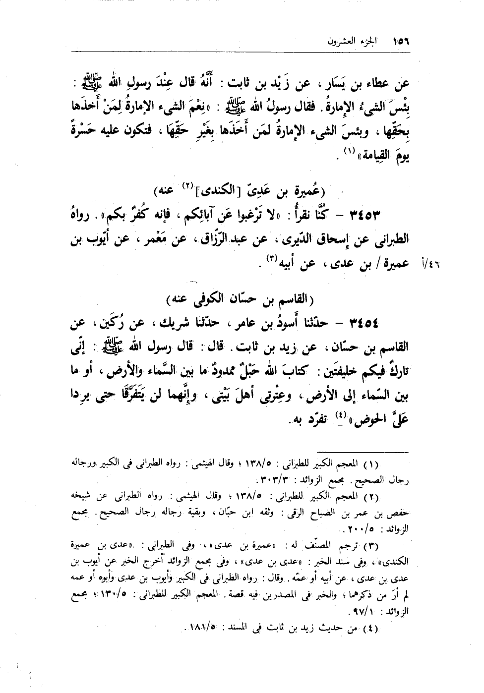 (¬2) المعجم الكبير للطبرانى: 5/138؛ وقال الهيثمى: رواه الطبرانى عن شيخه حفص بن عمر بن الصباح الرقى: وثقه ابن حبان، وبقية رجاله رجال الصحيح. مجمع الزوائد: 5/200.