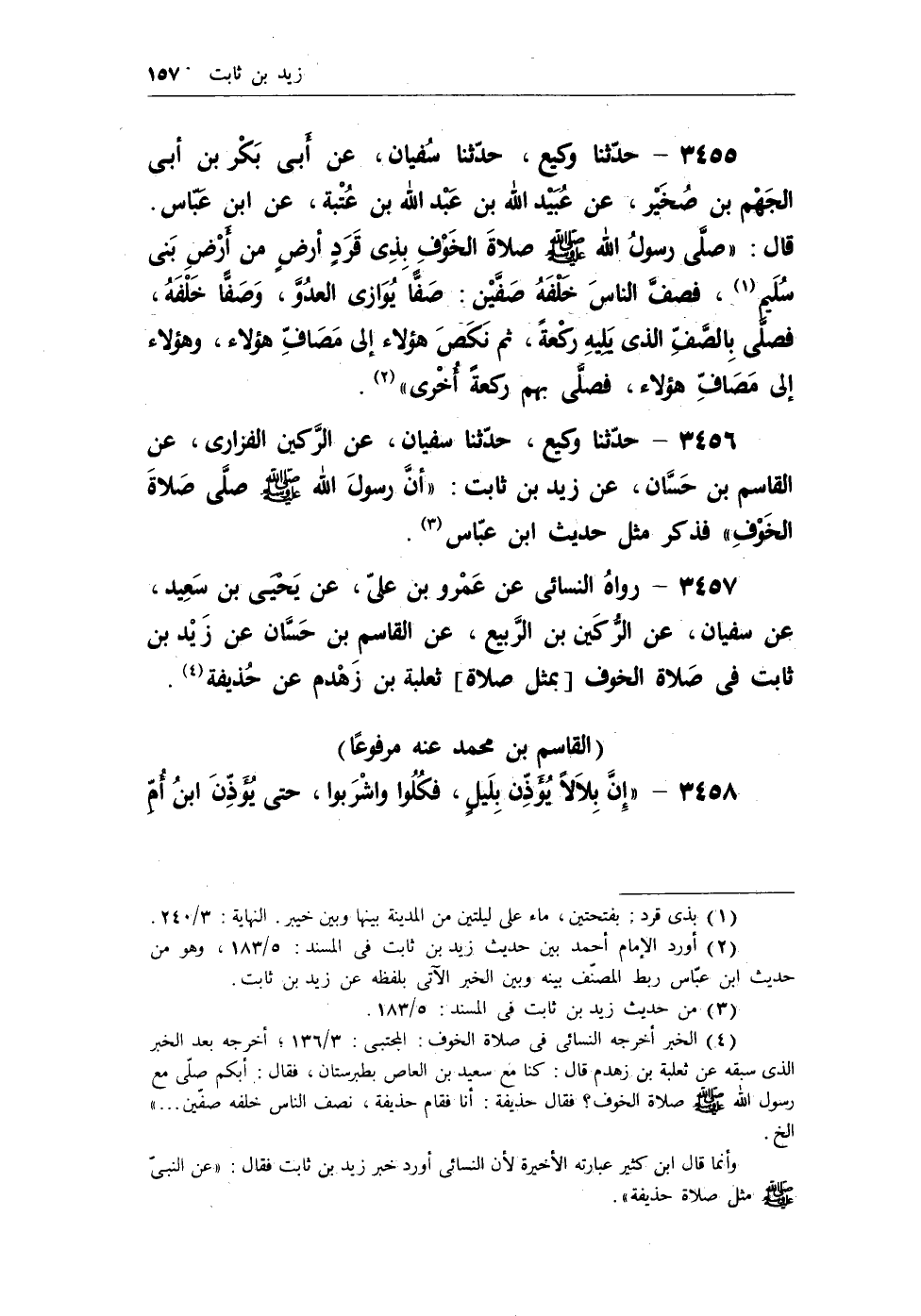 3457 - رواه النسائى عن عَمْرو بن علّى، عن يحيى بن سعيد، عن سفيان، عن الركين بن الربيع، عن القاسم بن حسان عن زيد بن ثابت فى صلاة الخوف [بمثل صلاة] ثعلبة بن زهدم عن حذيفة (¬4) .