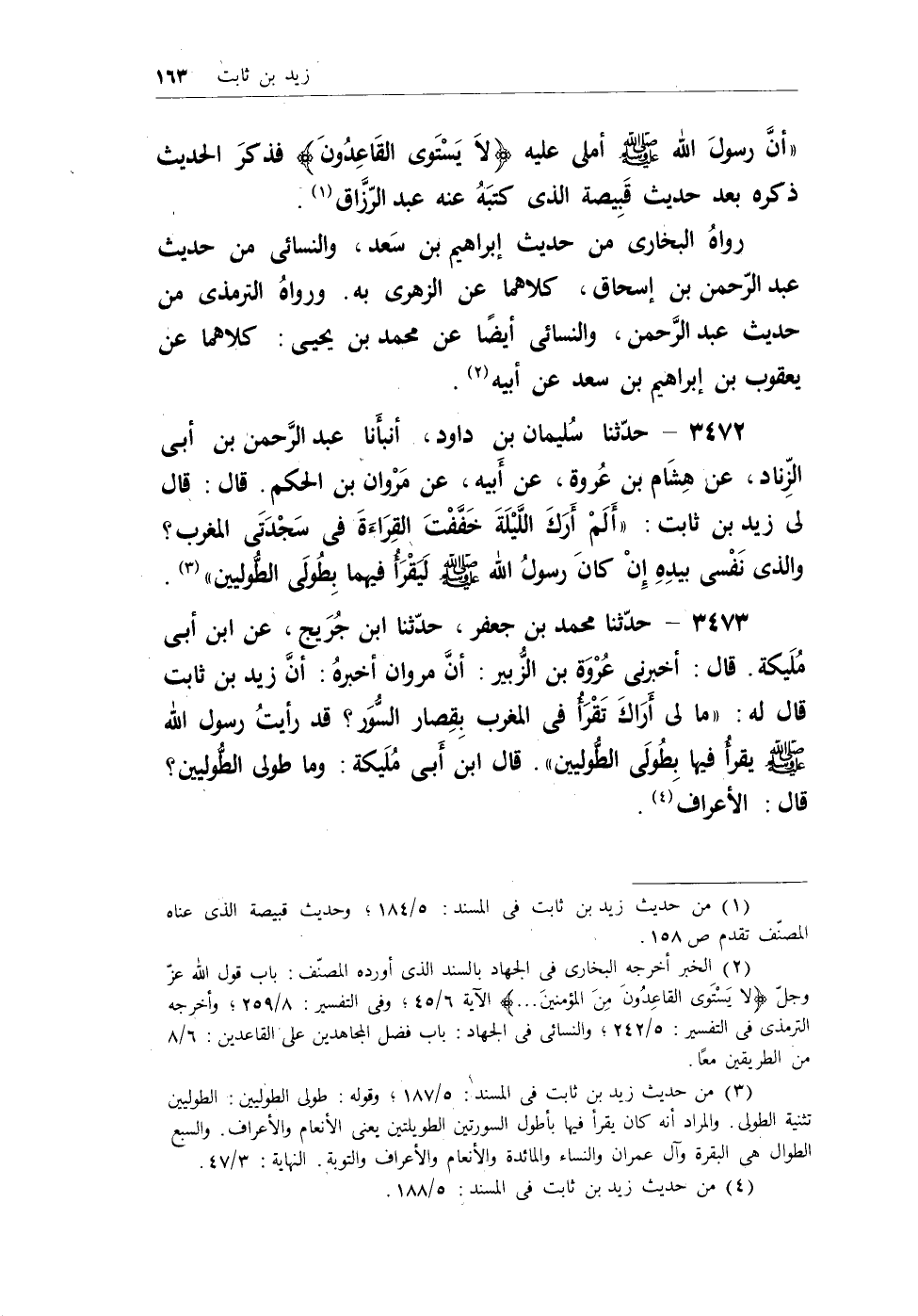 (¬2) من حديث زيد بن ثابت فى المسند: 5/188.