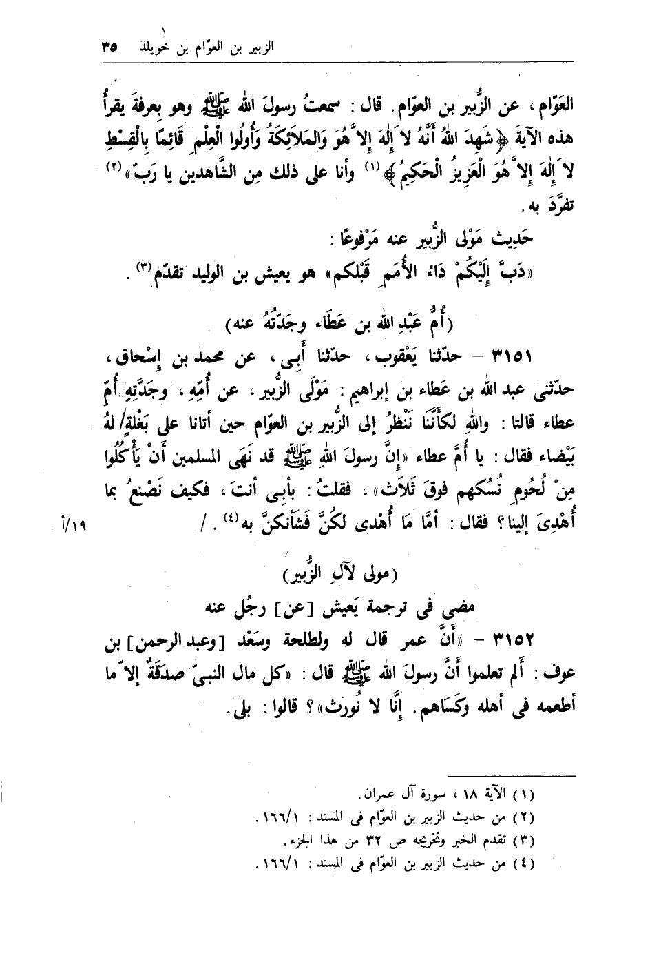 (¬1) () من حديث الزبير بن العوام فى المسند: 1/166.