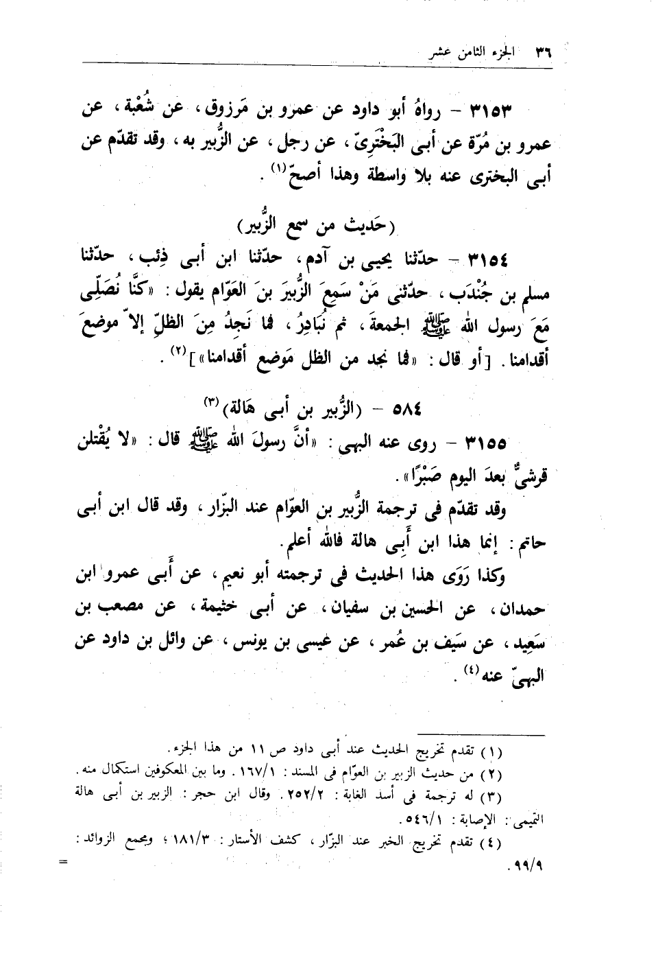 3153- رواه أبو داود عن عمرو بن مرزوق، عن شعبة، عن عمرو بن مرة عن أبى البخترى، عن رجل، عن الزبير به، وقد تقدم عن أبى البخترى عنه بلا واسطة وهذا أصح (¬1) .