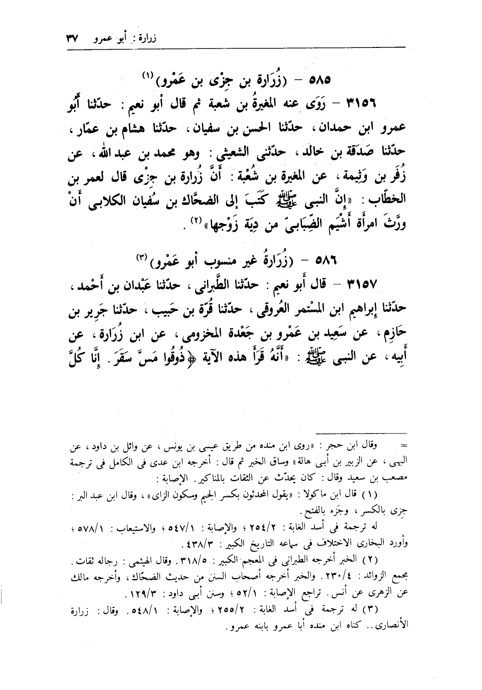 (¬3) له ترجمة فى أسد الغابة: 2/255؛ والإصابة: 1/548. وقال زرارة الأنصارى.. كتاب بن منده أبا عمرو بإنبه عمرو.