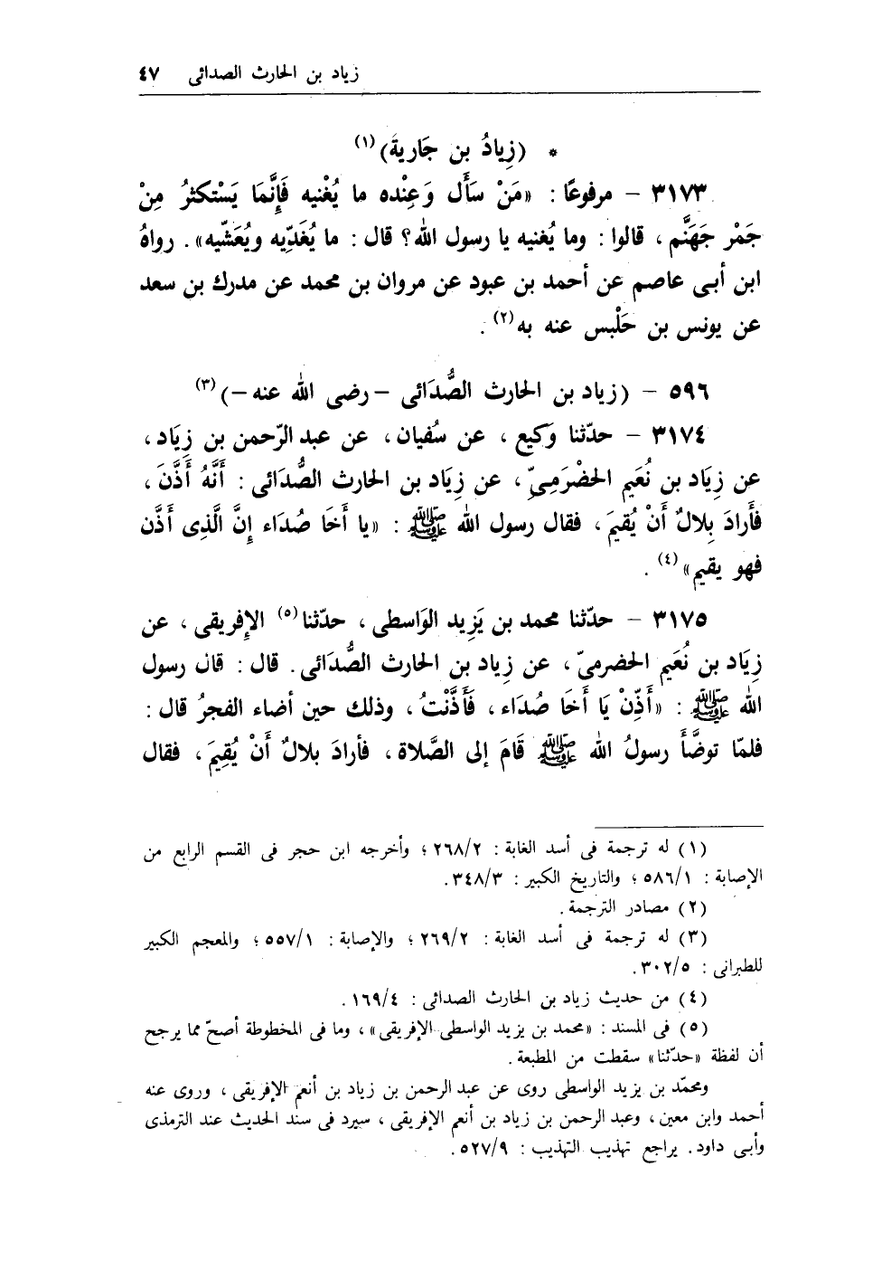 (¬3) من حديث زياد بن الحارث الصدائى: 4/169.