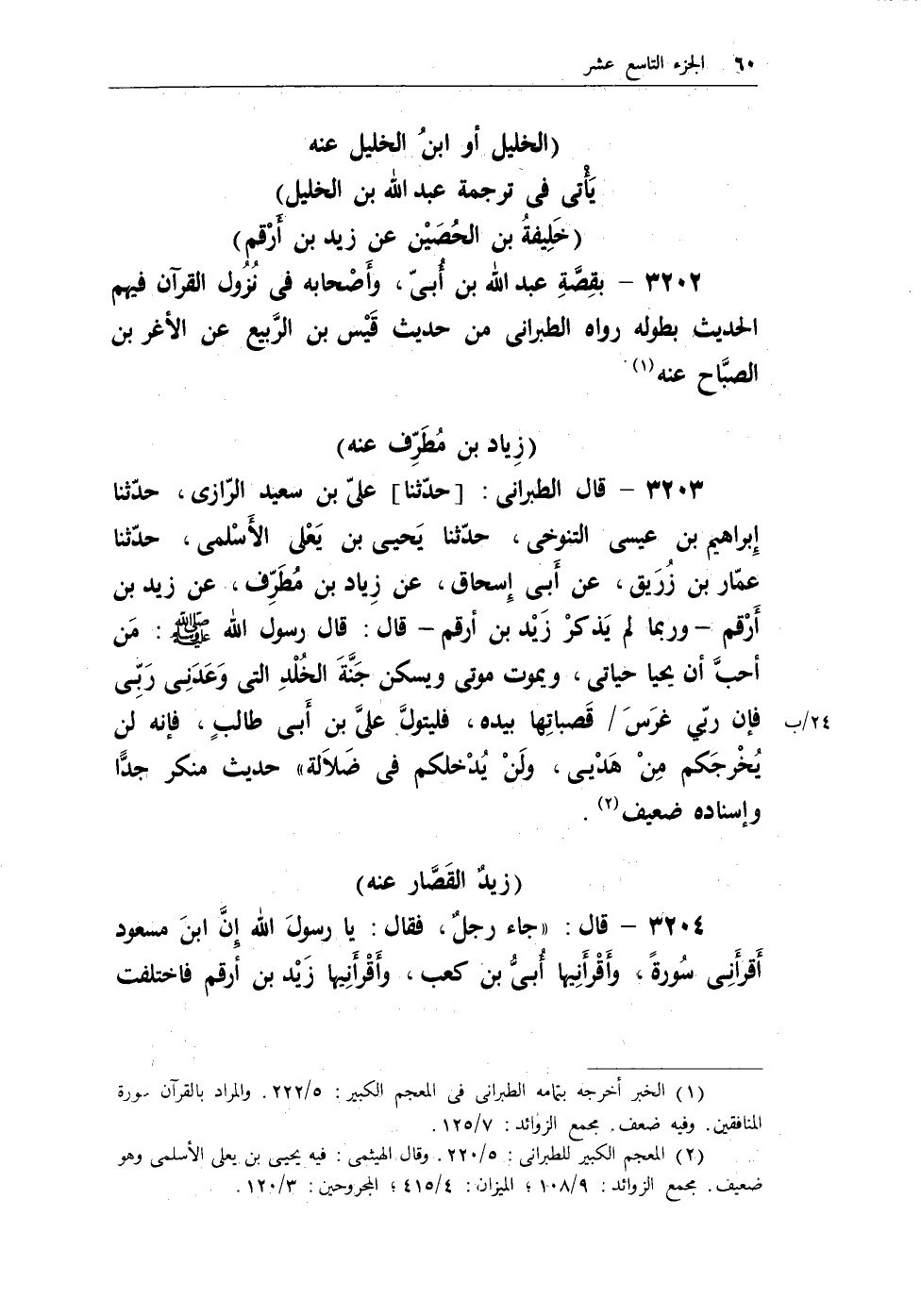 3202- بقصة عبد الله بن أُبىّ، وأصحابه فى نزول القرآن فيهم الحديث بطوله رواه الطبرانى من حديث قيس بن الربيع عن الأغر بن الصباح عنه (¬1) .