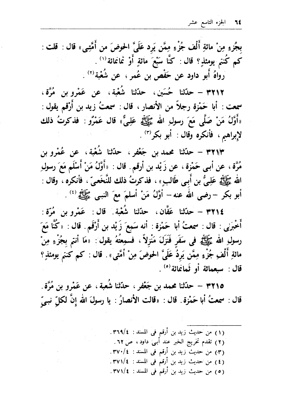 (¬3) من حديث زيد بن أرقم فى المسند: 4/371.