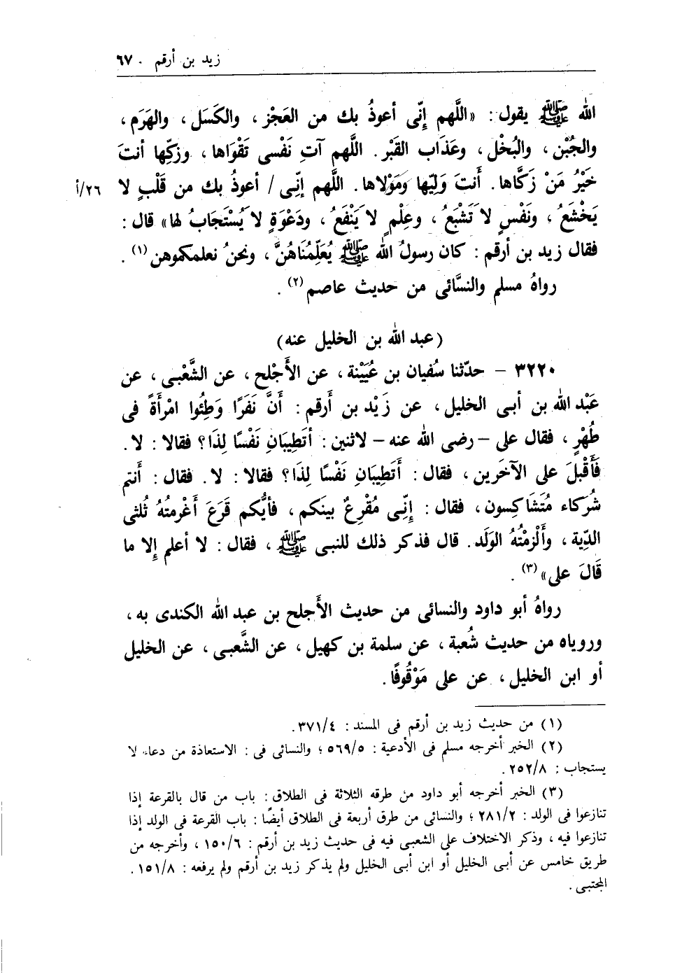 (¬1) () من حديث زيد بن أرقم فى المسند: 4/371.
