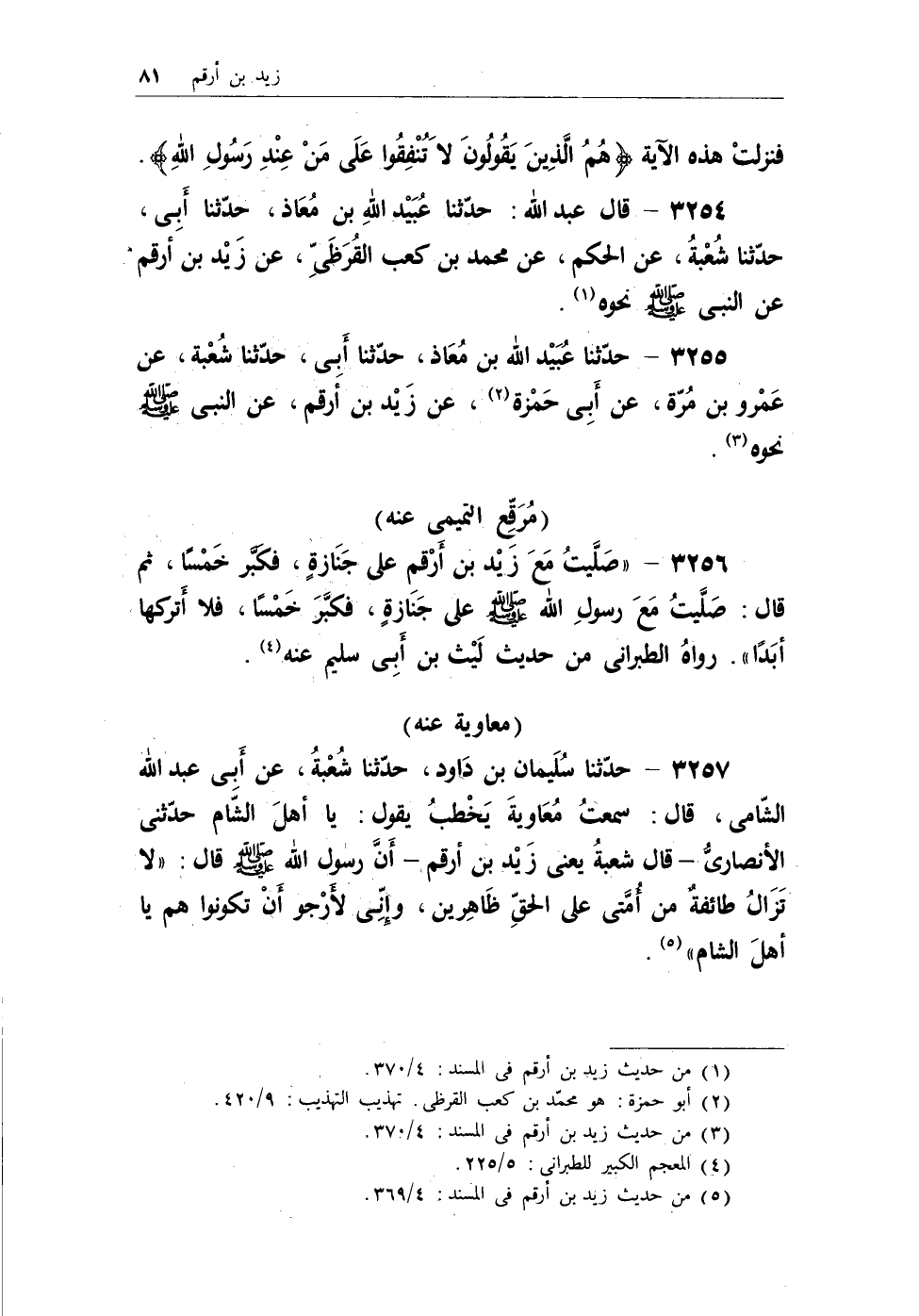 (¬5) من حديث زيد بن أرقم فى المسند: 4/369.