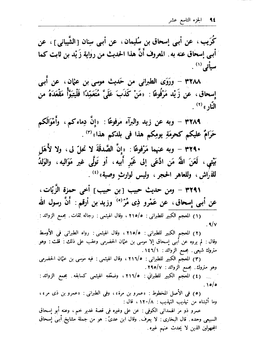 (¬1) المعجم الكبير للطبرانى: 5/215، وقال الهيثمى: رواه الطبرانى فى الأوسط وقال: لم يروه عن أبى إسحاق إلا موسى بن عثمان الحضرمى وعقب على ذلك: قلت: وهو متروك شيعى. مجمع الزوائد: 1/146.