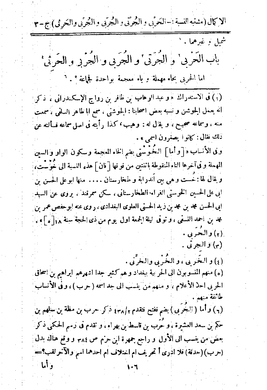 باب: الحَربي 1 والجُرتي 2 والجُرَبي والجُربي والحَرِثي 3