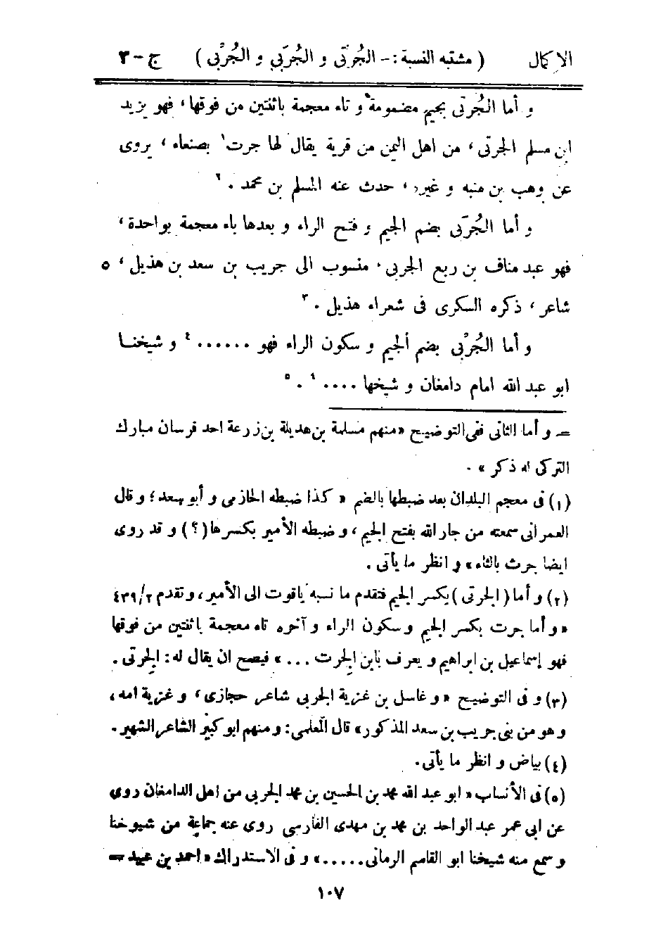 2 وأما "الجرتي" بكسر الجيم فتقدم ما نسبه ياقوت إلى الأمير، وتقدم 2/ 439 "وأما جرت بكسر الجيم وسكون الراء وآخره تاء معجمة باثنتين من فوقها فهو إسماعيل بن إبراهيم ويعرف بابن الجرت...." فيصح أن يقال له: الجرتي.