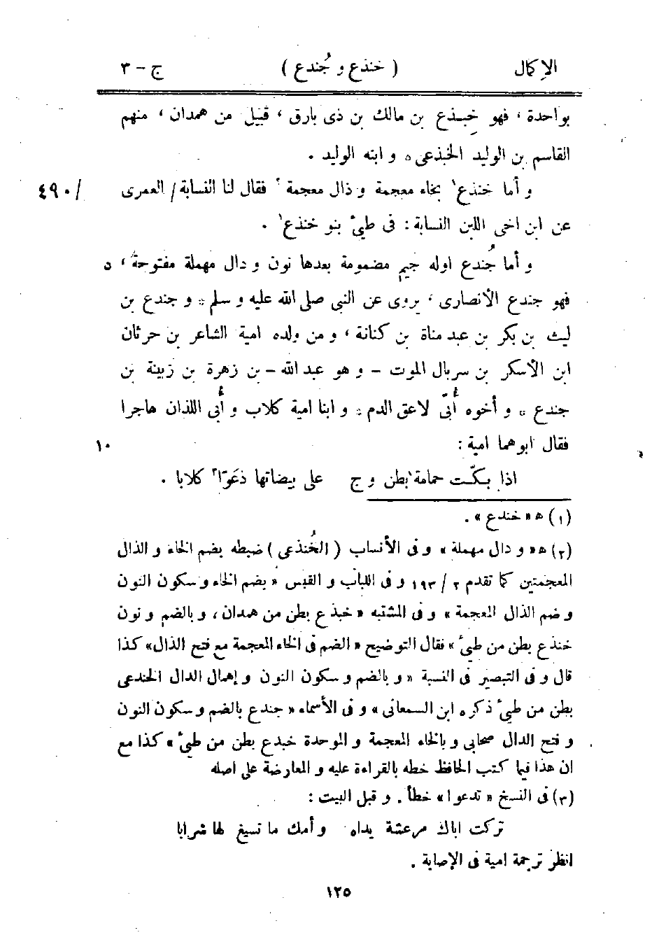 2 هـ "ودال مهملة" وفي الأنساب "الخنذعي" ضبطه بضم الخاء والذال المعجمتين كما تقدم 2/ 193 وفي اللباب والقبس "بضم الخاء وسكون النون وضم الذال المعجمة" وفي المشتبه "خبذع بطن من همدان، وبالضم ونون خنذع بطن من طيئ" فقال التوضيح "الضم في الخاء المعجمة مع فتح الذال" كذا قال وفي التبصير في النسبة "وبالضم وسكون النون وإهمال الدال الخندعي بطن من طيئ ذكره ابن السمعاني" وفي الأسماء "جندع بالضم وسكون النون وفتح الدال صحابي وبالخاء المعجمة والموحدة خبدع بطن من طيئ" كذا مع أن هذا فيما كتب الحافظ خطه بالقراءة عليه والمعارضة على أصله.