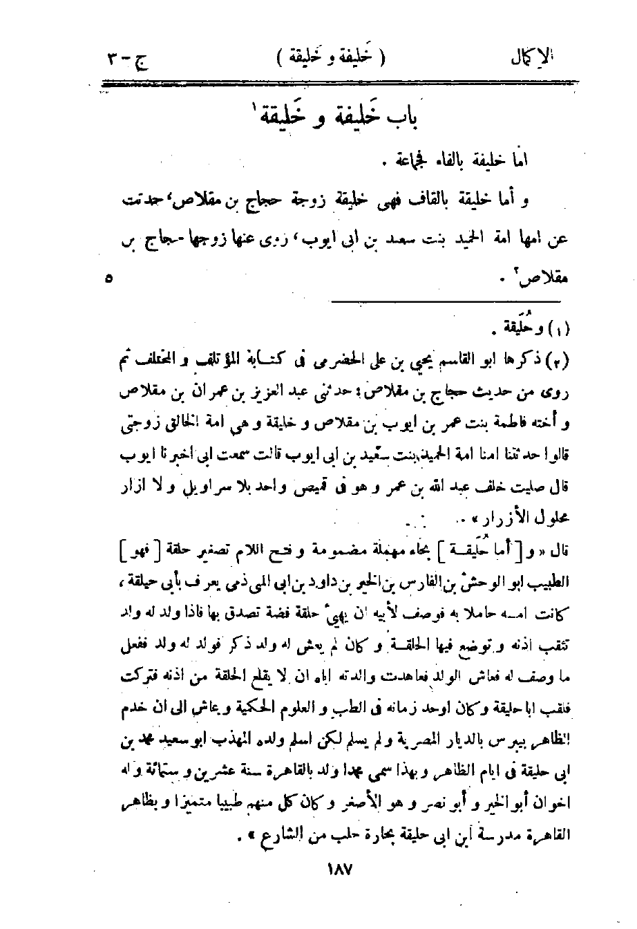 كتاب الإكمال في رفع الارتياب عن المؤتلف والمختلف في الأسماء والكنى والأنساب (اسم الجزء: 3)