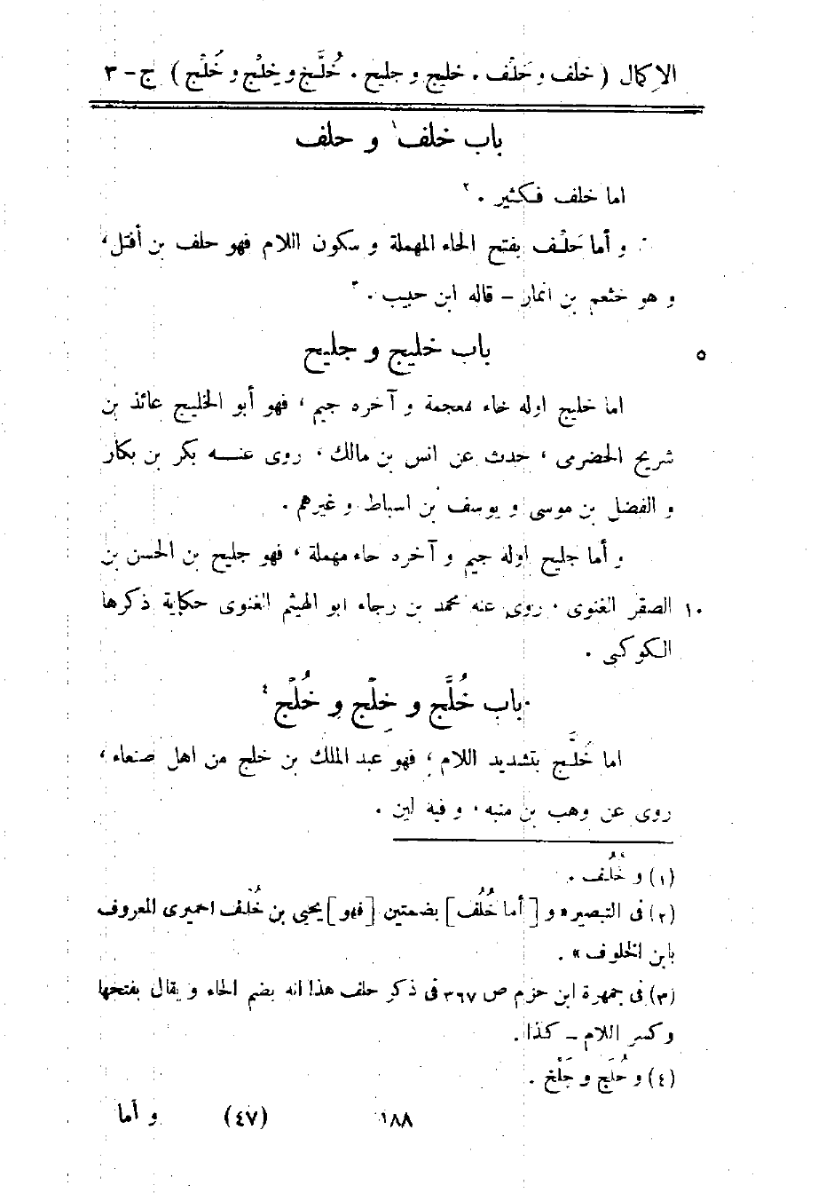 2 في التبصير "و"أما خُلُف" بضمتين "فهو" يحيى بن خُلُف الحميري المعروف بابن الخلوف".
