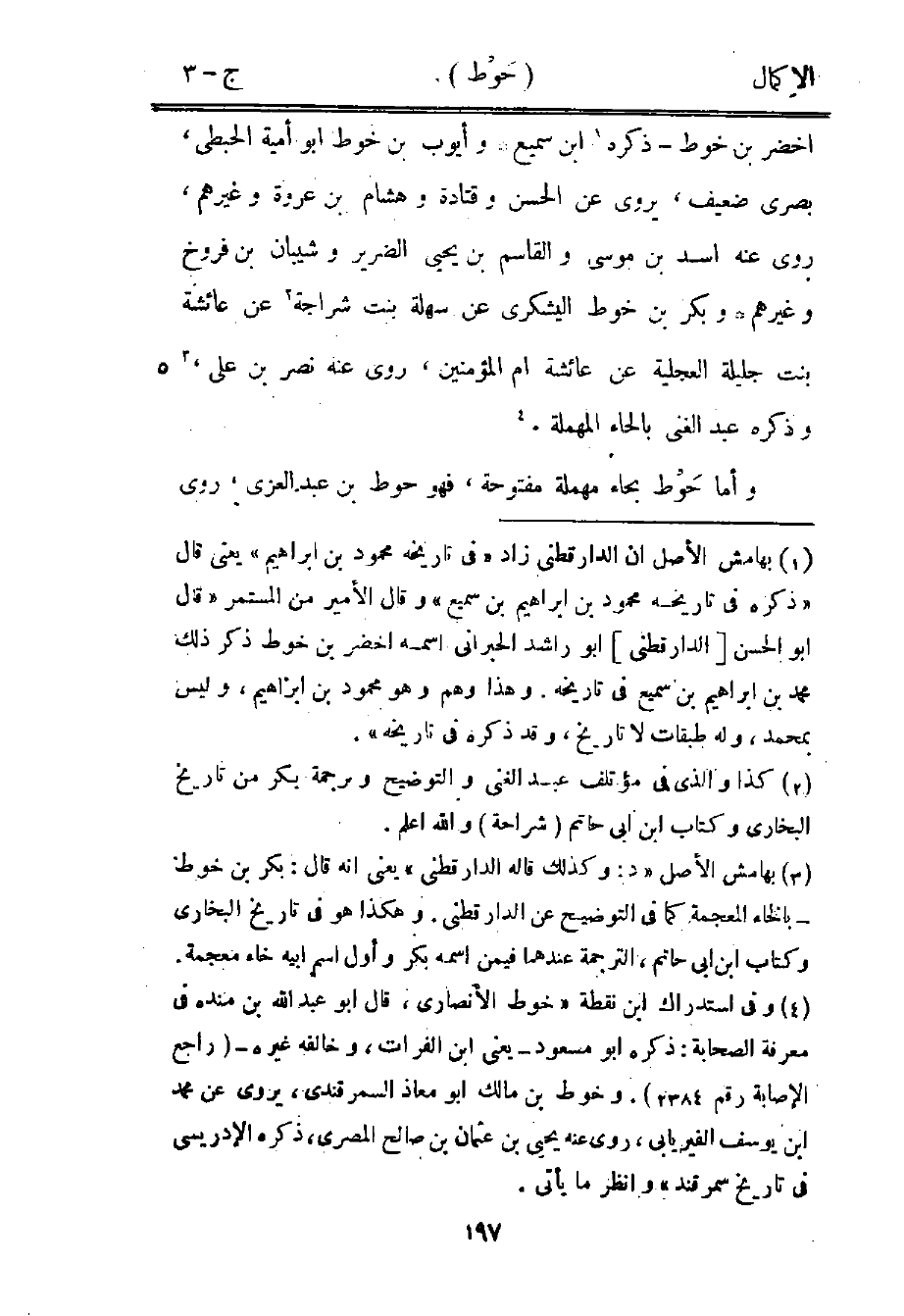 1 بهامش الأصل أن الدارقطني زاد "في تاريخه محمود بن إبراهيم" يعني قال "ذكره في تاريخه محمود بن إبراهيم بن سميع" وقال الأمير من المستمر "قال أبو الحسن "الدراقطني" أبو راشد الحبراني اسمه أخضر بن خوط ذكر ذلك محمد بن إبراهيم بن سميع في تاريخه. وهذا وهم وهو محمود بن إبراهيم، وليس بمحمد، وله طبقات لا تاريخ، وقد ذكره في تاريخه".