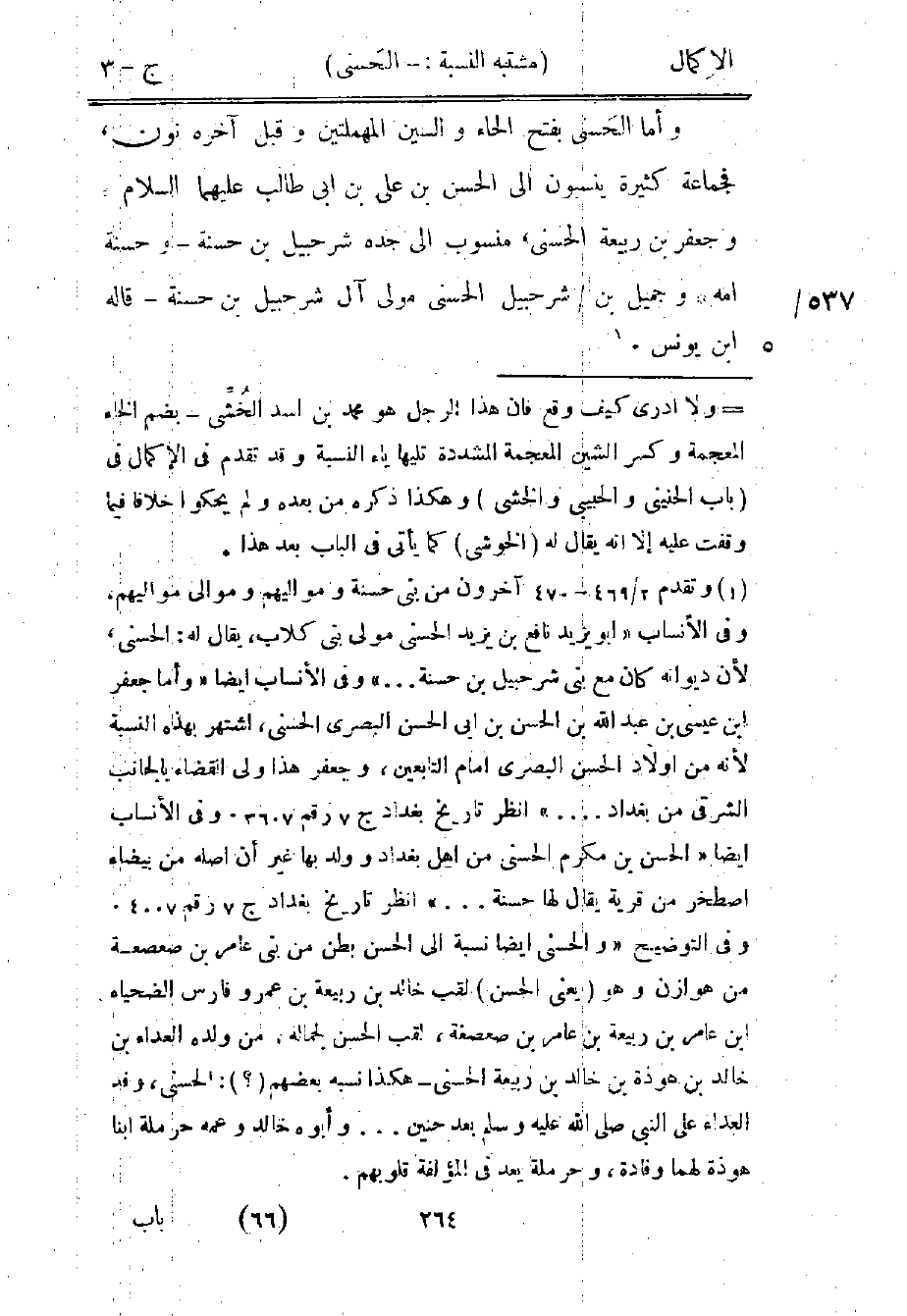 1 وتقدم 2/ 469-470 آخرون من بني حسنة ومواليهم وموالي مواليهم، وفي الأنساب "أبو يزيد نافع بن يزيد الحسني مولى بني كلاب، يقال له: الحسني، لأنه ديوانه كان مع بني شرحبيل بن حسنة ... " وفي الأنساب أيضا "وأما جعفر بن عيسى بن عبد الله بن الحسن بن أبي الحسن البصري الحسني، اشتهر بهذه النسبة لأنه من أولاد الحسن البصري إمام التابعين، وجعفر هذا ولي القضاء بالجانب الشرقي من بغداد ... " انظر تاريخ بغداد ج7 رقم 3607. وفي الأنساب أيضا "الحسن بن مكرم الحسني من أهل بغداد وولد بها غير أن أصله من بيضاء إصطخر من قرية يقال لها حسنة ... " انظر تاريخ بغداد ج7 رقم 4007. وفي التوضيح "والحسني أيضا نسبة إلى الحسن بطن من بني عامر بن صعصعة من هوازن وهو "يعني الحسن" لقب خالد بن ربيعة بن عمرو فارس الضحياء بن عامر بن ربيعة بن عامر بن صعصغة، لقب الحسن لجماله، من ولده العداء بن خالد بن هوذة بن خالد بن ربيعة الحسني -هكذا نسبه بعضهم "؟ ": الحسني، وفد العداء على النبي صلى الله عليه وسلم بعد حنين ... وأبوه خالد وعمه حرملة ابنا هوذة لهما وفادة، وحرملة يعد في المؤلفة قلوبهم.