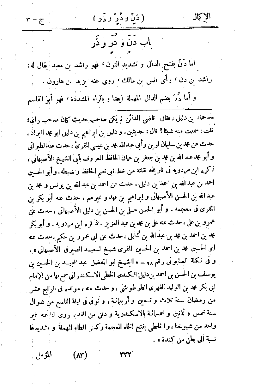 كتاب الإكمال في رفع الارتياب عن المؤتلف والمختلف في الأسماء والكنى والأنساب (اسم الجزء: 3)