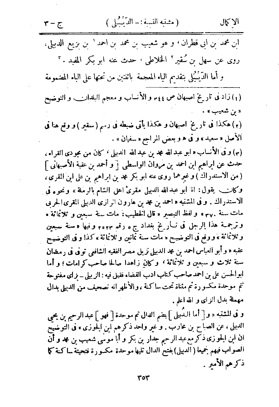 كتاب الإكمال في رفع الارتياب عن المؤتلف والمختلف في الأسماء والكنى والأنساب (اسم الجزء: 3)