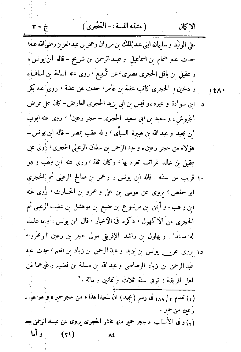2 وفي الأنساب "حجر حمير منها مختار الحجري يروي عن عبد الرحمن =