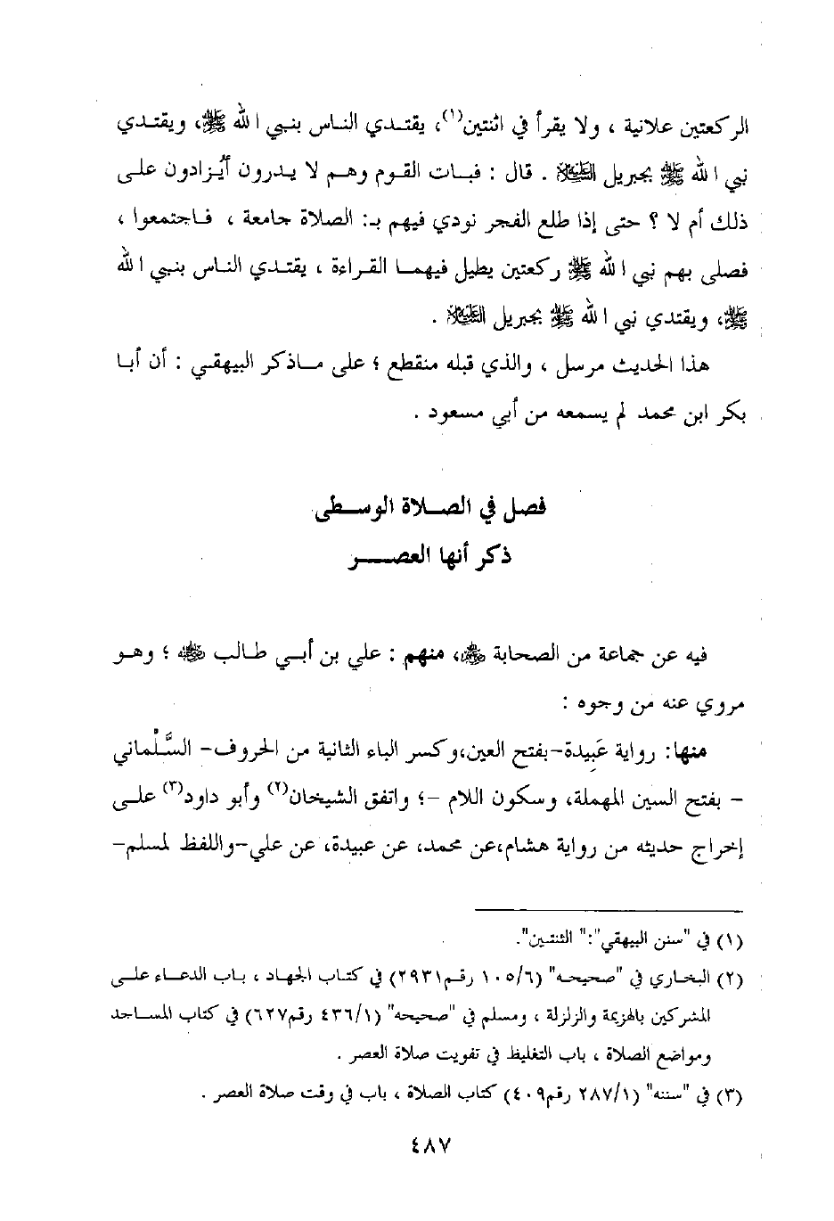 فصل في الصلاة الوسطى ذكر أنها العصر