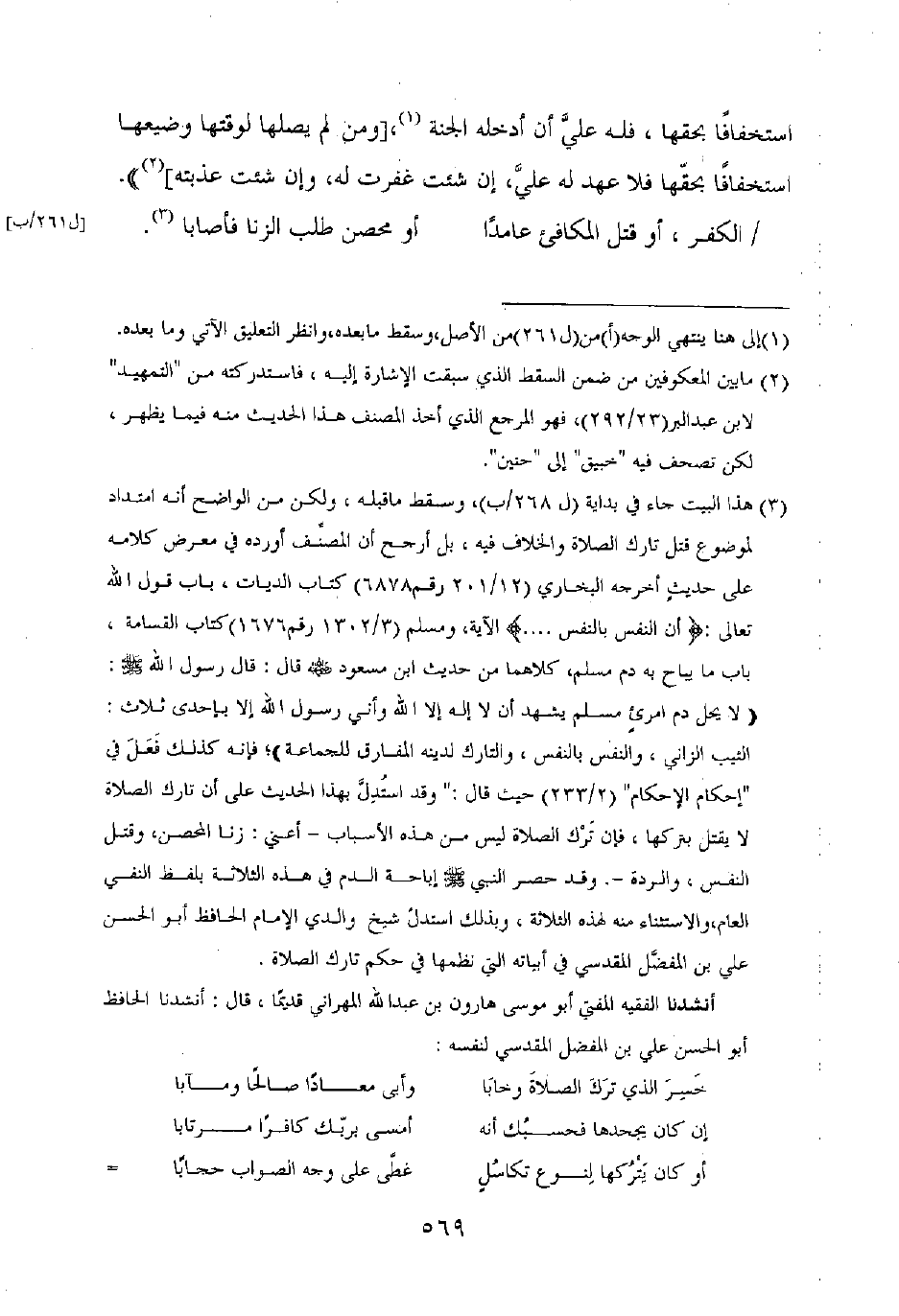 استخفافا بحقها، فله علي أن أدخله الجنة، [ومن لم يصلها لوقتها وضيعها استخفافا بحقها فلا عهد له علي، إن شئت غفرت له، وإن شئت عذبته] ".