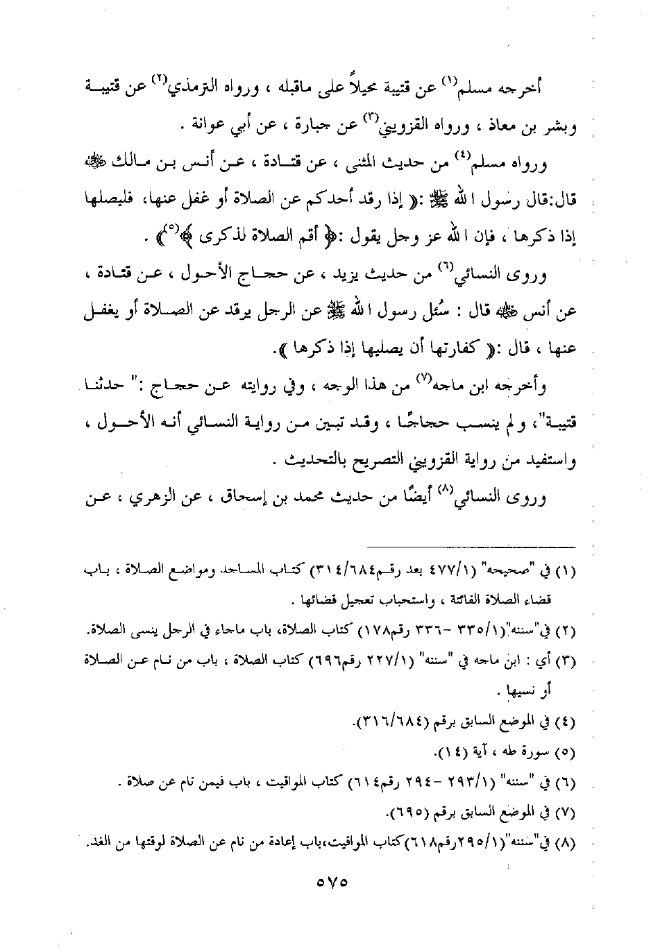 وروى النسائي من حديث يزيد، عن حجاج الأحول، عن قتادة، عن أنس رضي الله عنه قال: سئل رسول الله صلى الله عليه وسلم عن الرجل يرقد عن الصلاة أو يغفل عنها، قال: "كفارتها أن يصليها إذا ذكرها".
