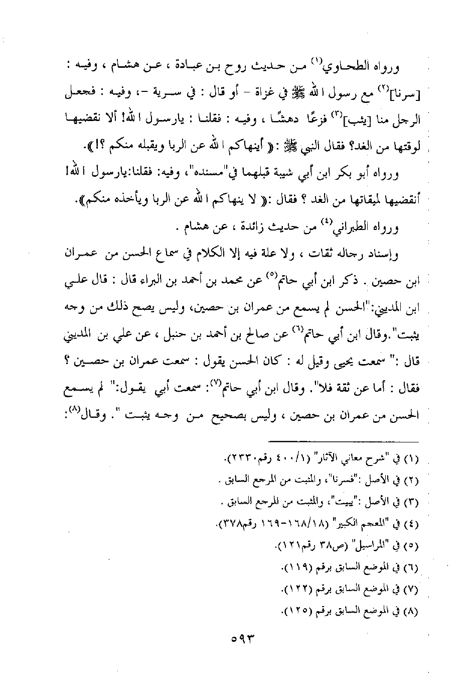 وإسناد رجاله ثقات، ولا علة فيه إلا الكلام في سماع الحسن بن عمران بن حصين. ذكر ابن أبي حاتم عن محمد بن أحمد بن البراء قال: قال علي بن المديني: "الحسن لم يسمع من عمران بن حصين، وليس يصح ذلك من وجه يثبت". وقال ابن أبي حاتم عن صالح بن أحمد بن حنبل، عن علي بن المديني قال: "سمعت يحيى وقيل له: كان الحسن يقول: سمعت عمران بن حصين؟ فقال: أما عن ثقة فلا". وقال ابن أبي حاتم: سمعت أبي يقول: "لم يسمع الحسن من عمران بن حصين، وليس بصحيح من وجه يثبت". وقال: