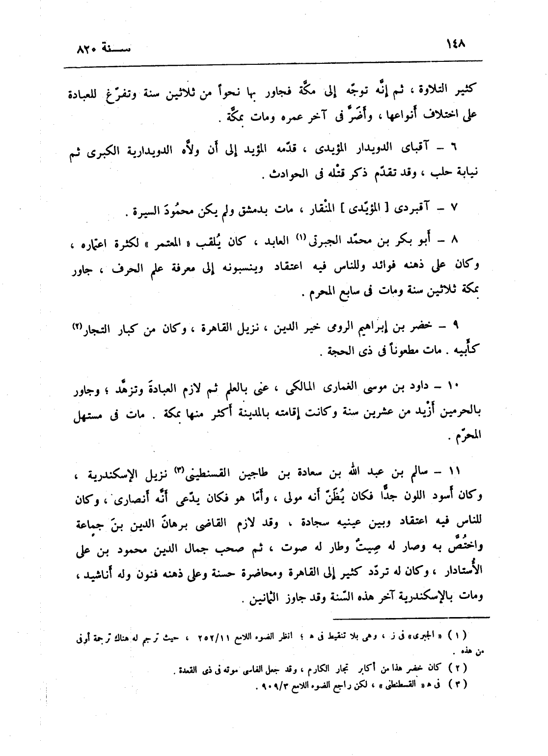 أبو بكر بن محمد الجبرتي العابد، كان يلقب المعتمر لكثرة اعتماره، وكان على ذهنه فوائد، وللناس فيه اعتقاد، وينسبونه إلى معرفة علم الحرف، جاور بمكة ثلاثين سنة، ومات في سابع المحرم.