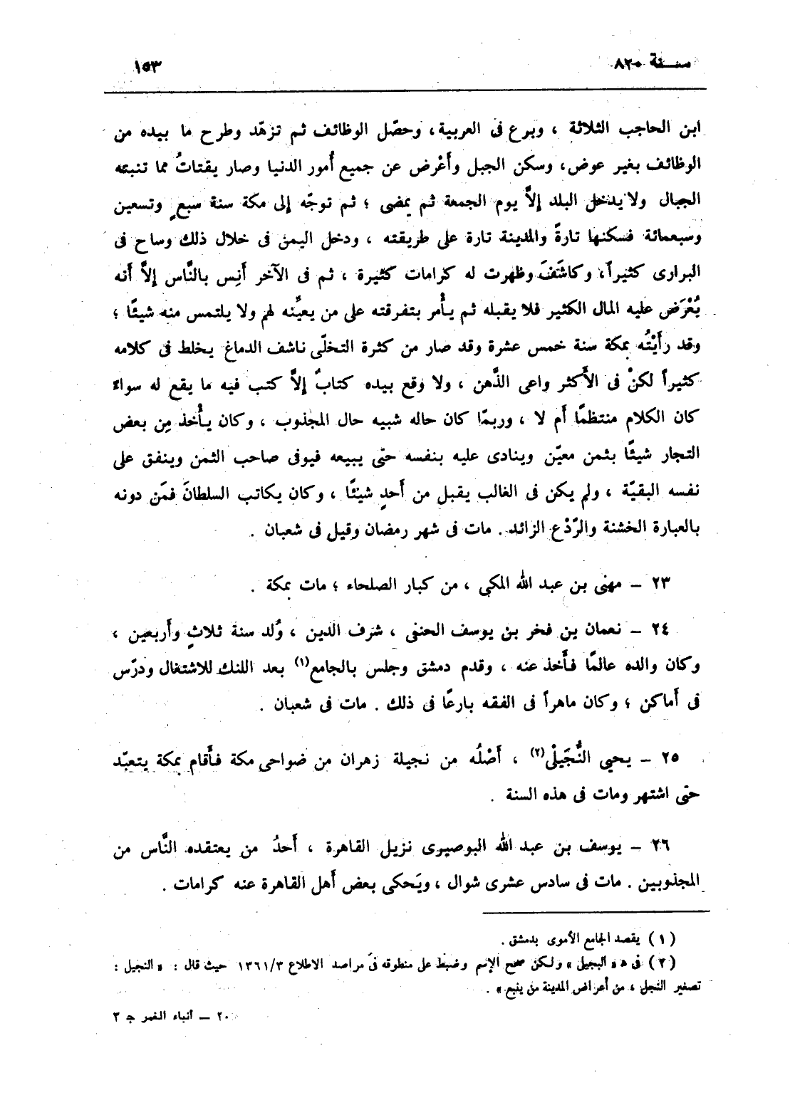 يحيى البجيلي، أصله من بجيلة زهران من ضواحي مكة، فأقام بمكة يتعبد حتى اشتهر، ومات في هذه السنة.
