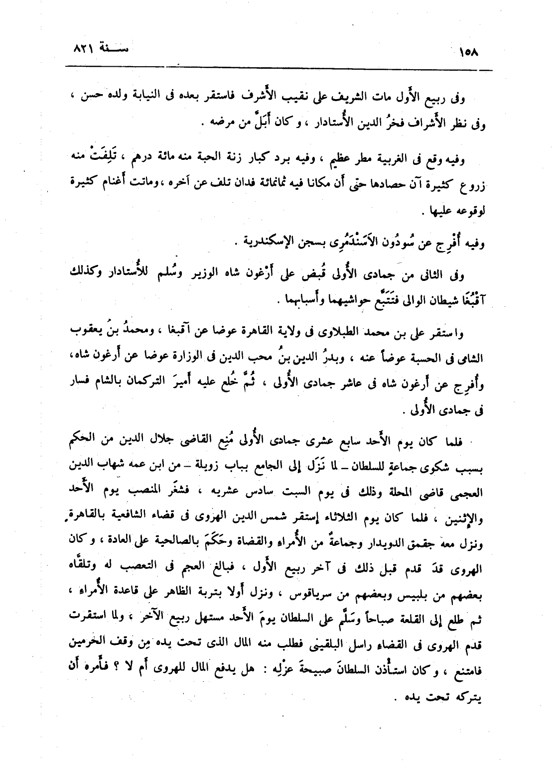 وفيه أفرج عن سودون الاسندمري من سجن الإسكندرية.