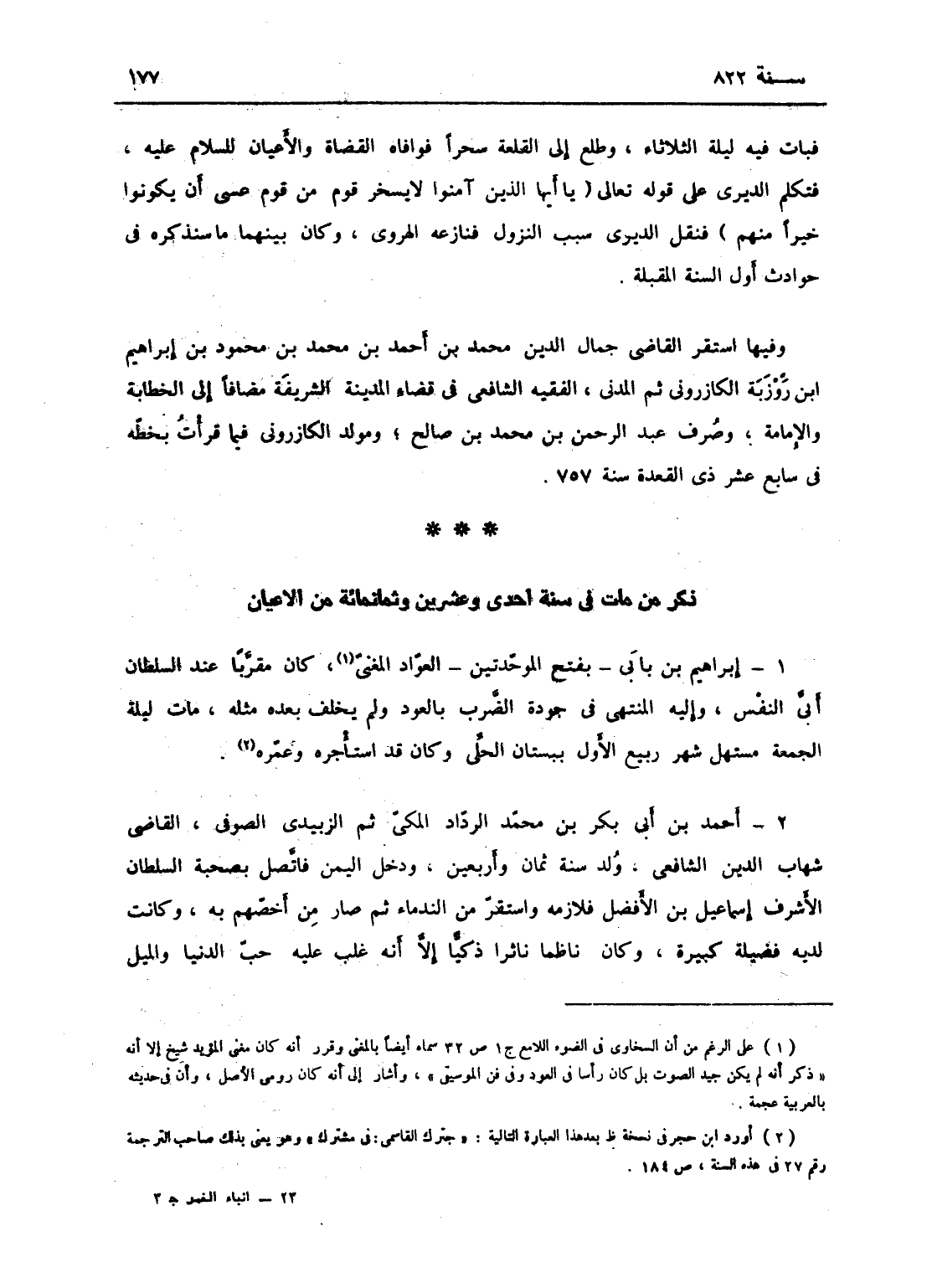 في سنة إحدى وعشرين وثمانمائة من الأعيان