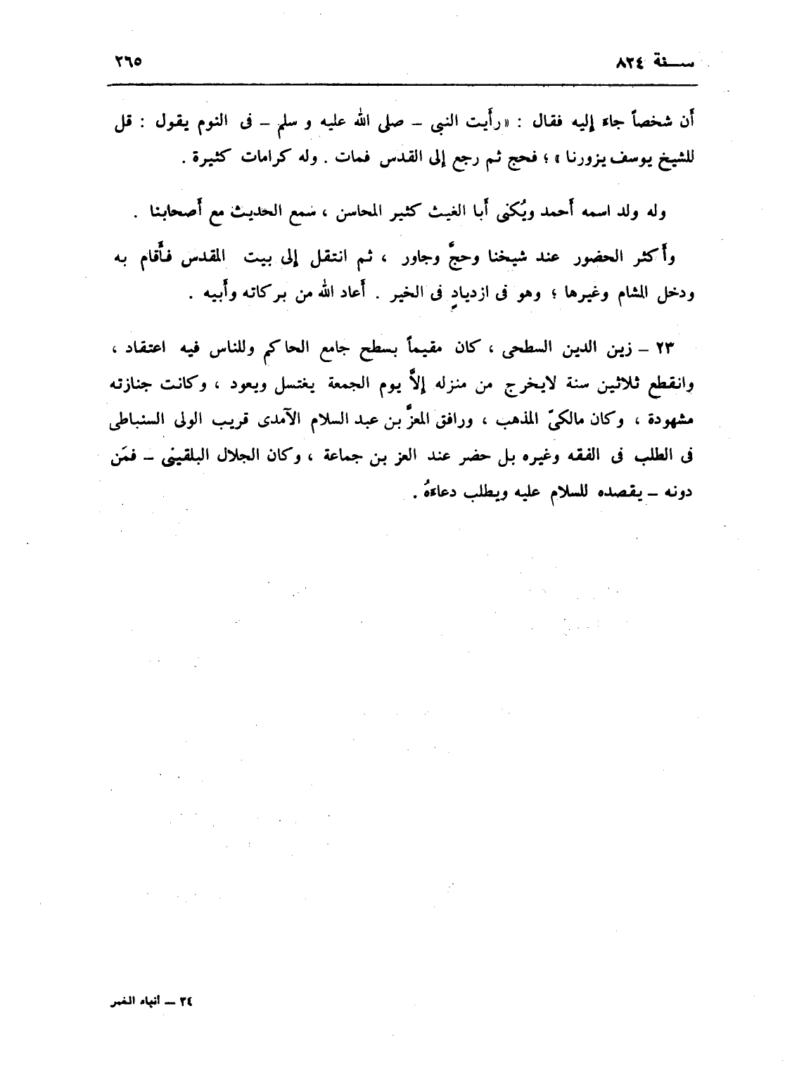 أن شخصاً جاء فقال: رأيت النبي صلى الله عليه وسلم في النوم يقول لي قل للشيخ يوسف يزورنا، فحج ثم رجع الى القدس ثم رجع فمات، وله كرامات كثيرة.