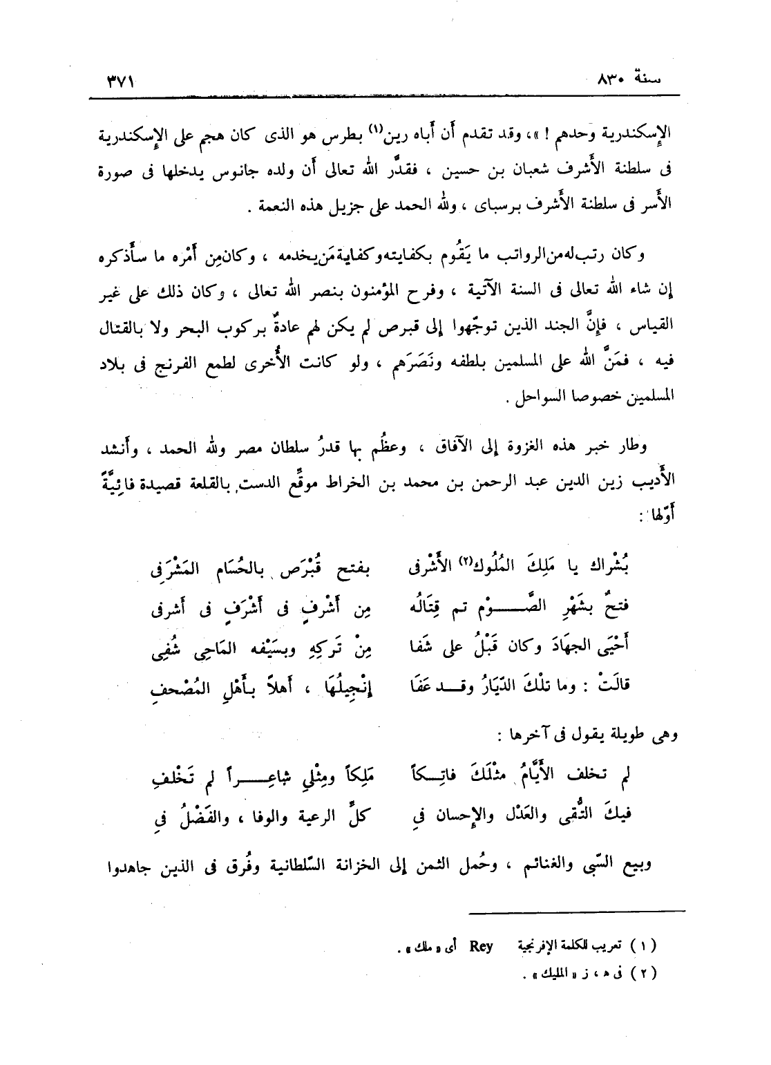 بشراك يا ملك الملوك الأشرف ... بفتح قبرس بالحسام المشرف