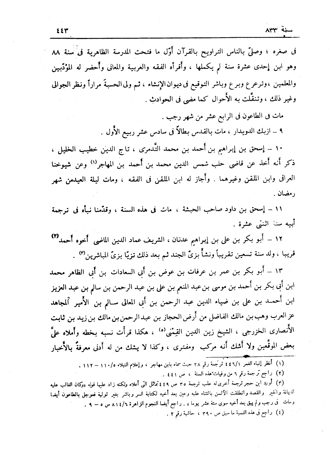 في صغره، وصلى بالناس التراويح بالقرآن أول ما فتحت الظاهرية في سنة 88 وهو ابن إحدى عشرة سنة لم يكملها، وأقرأه الفقه والعربية والمعاني والبيان. وأحضر له المؤدبون والمعلمون وترعرع وبرع، وباشر التوقيع في ديوان الإنشاء، ثم ولى الحسبة مراراً ونظر الجوالي وغير ذلك، وتنقلت به الاحوال كما مضى في الحوادث؛ مات في الطاعون في الرابع عشر من شهر رجب.