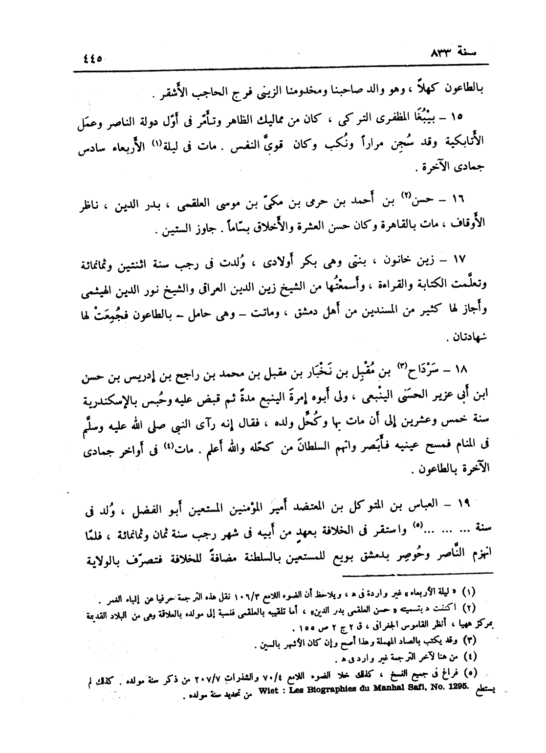 العباس بن المتوكل بن المعتضد أمير المؤمنين المستعين أبو الفضل ولد في سنة 20000 واستقر في الخلافة بعهد من أبيه في شهر رجب سنة ثمان وثمانمائة، فلما انهزم الناصر فرج وحوصر بدمشق بويع للمستعين بالسلطنة مضافة للخلافة فتصرف بالولاية
