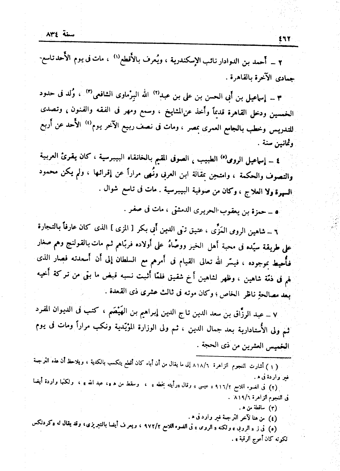 إسماعيل الرومي الطبيب الصوفي المقيم بالخانقاه البيبرسية، كان يقرئ العربية والتصوف والحكمة، وامتحن بمقالة ابن العربي ونهى مراراً عن إقرائها، ولم يكن محمود السيرة ولا العلاج، وكان من صوفية البيبرسية؛ مات في تاسع شوال.